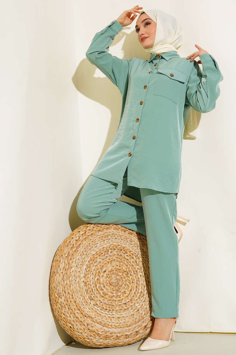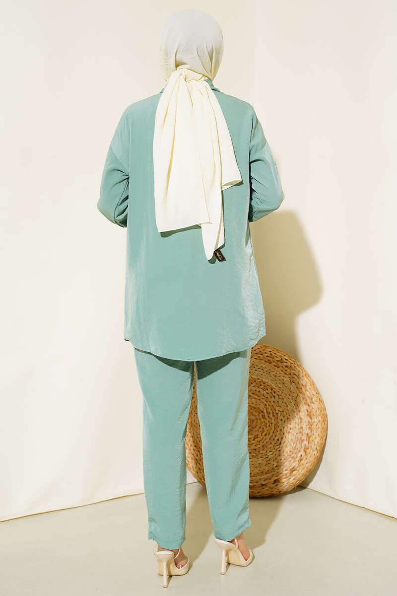 Yeni sezon ikili takımımız tunik ve pantolondan oluşmaktadır. Tuniğimiz boydan düğmelidir. Kol bilekleri manşetli ve düğmelidir. Tuniğimizin Göğsünde bir adet cebi mevcuttur. Pantolonumuzun beli lastiklidir. Cepsiz modeldir. Sade ve şık takımımız dolabınızda yerini beklemektedir.