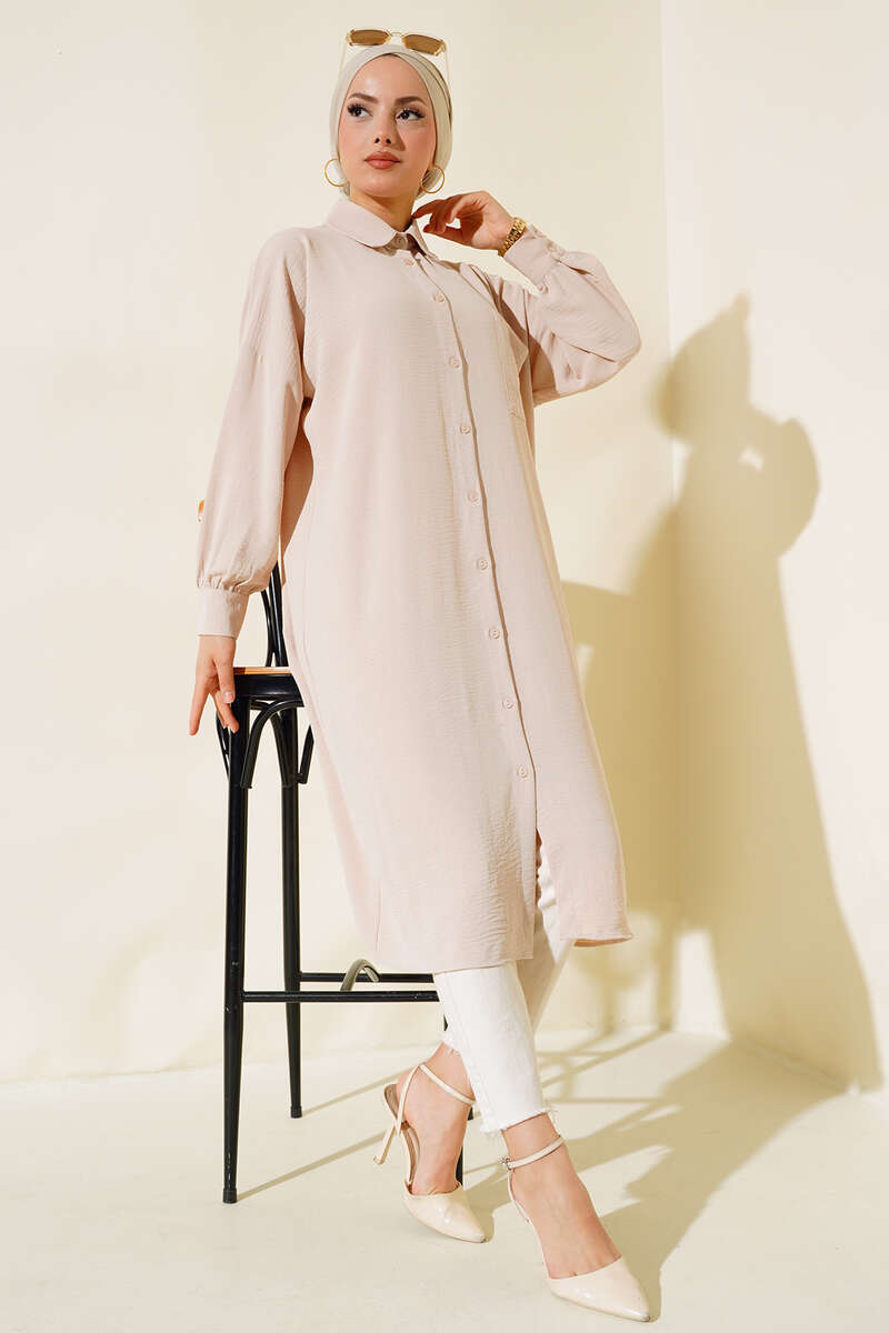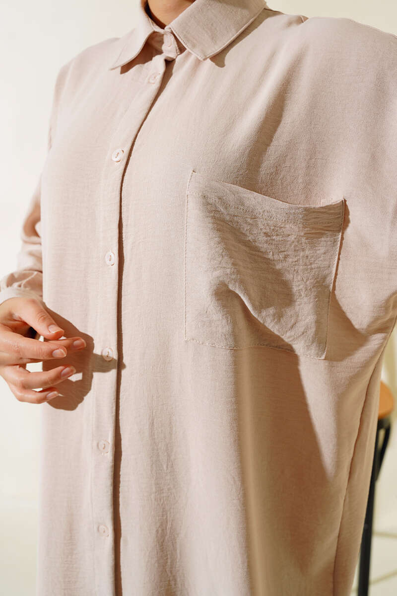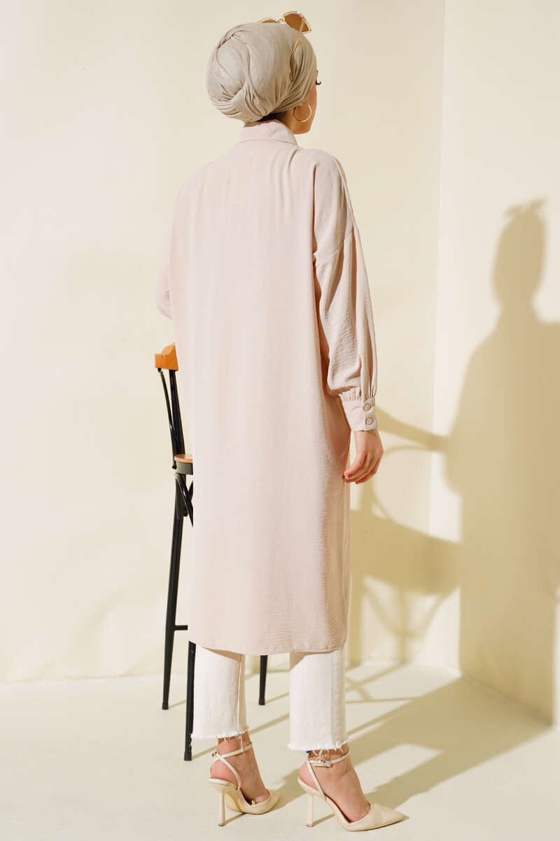 Yeni sezon tunik modelimiz sizlerle beraber. Tuniğimiz Oversize bir modeldir. Önünde bir adet cebi bulunur. Boydan düğmelidir. Kol bileklerin de iki adet düğme bulunur. Şık duruşunu ve rahat yapısını çok beğeneceksiniz. Renk seçeneklerimiz mevcuttur.