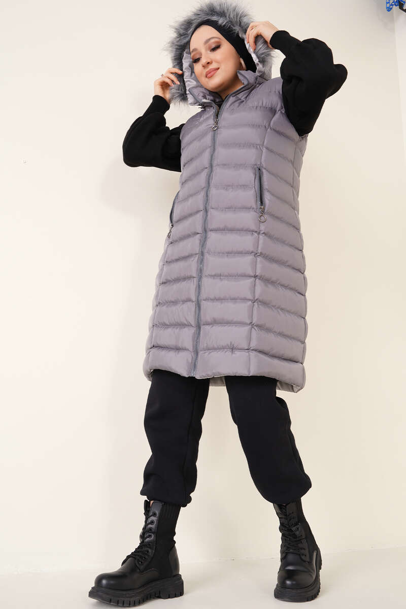 Yeni sezon şişme yelek soğuk havalarda içinizi ısıtıcaktır. Yeleğimizin kapüşonu kürklüdür. Kapüşonu çıkarılabilir. İki cebi bulunmaktadır. Önü ve cepleri fermuarlıdır. Her kıyafetinizin üstüne rahatlıkla kombin yapabilirsiniz. Farklı renk seçenekleri mevcuttur.