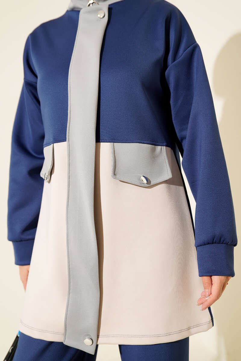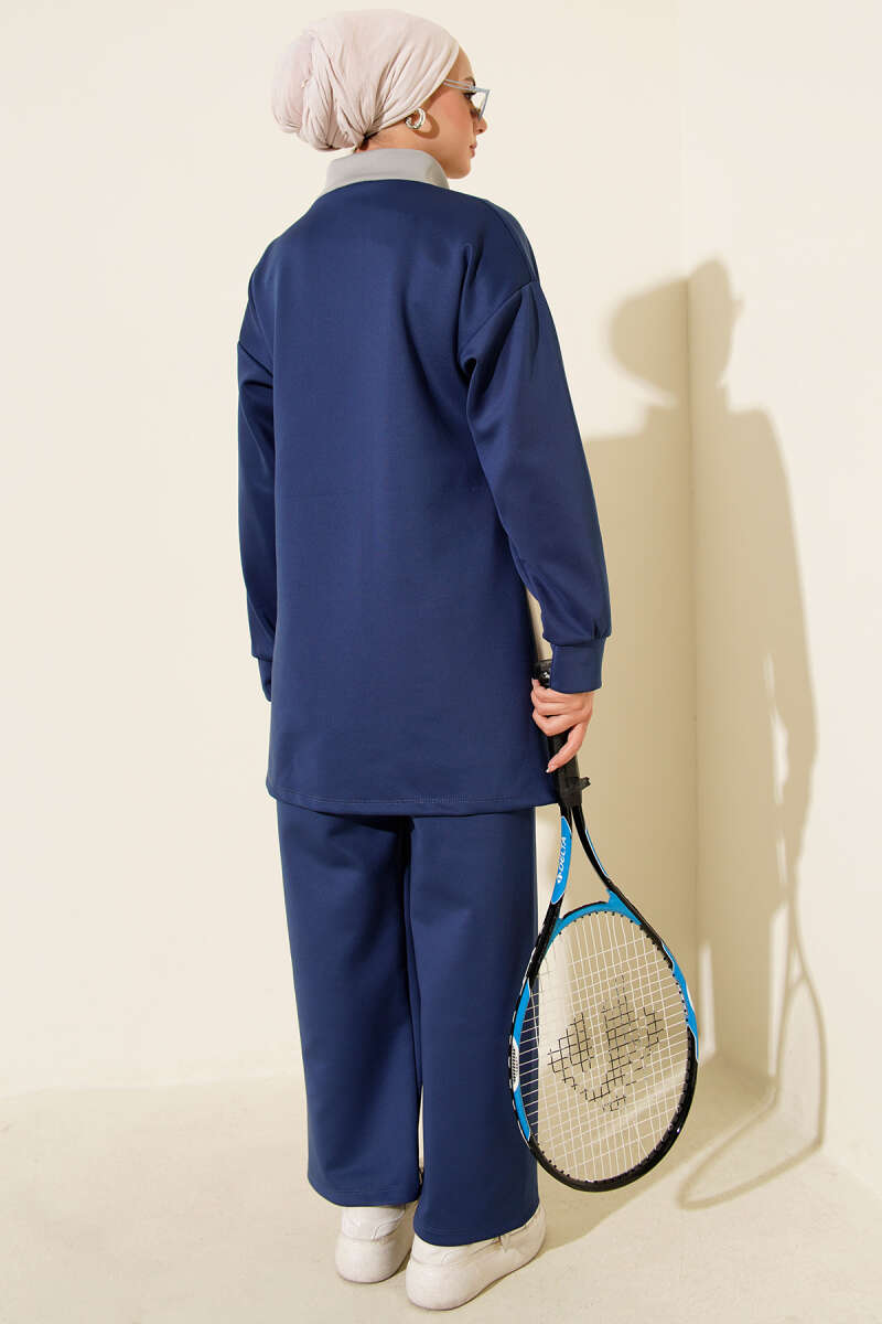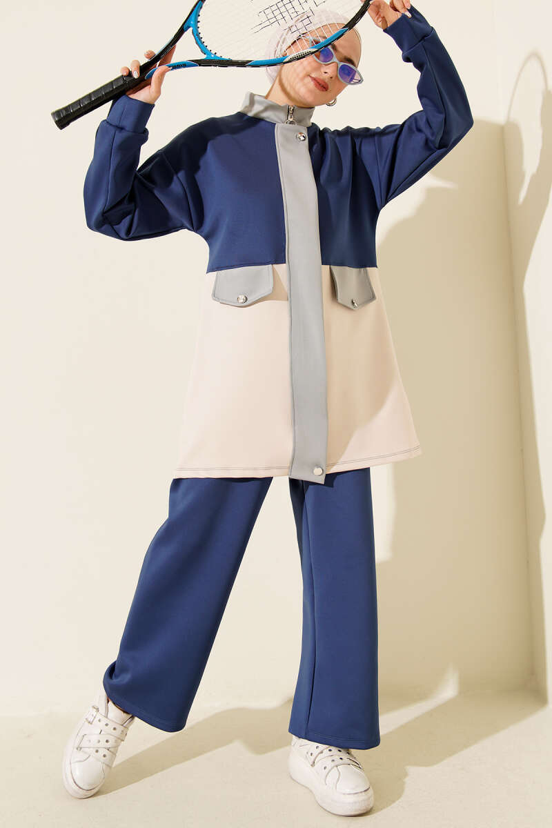 Metal Düğmeli Fermuarlı Scuba İkili Takım Lacivert