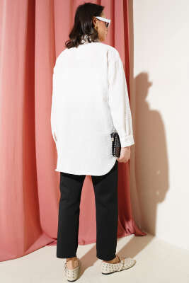Gizli Düğmeli Bel Kuşaklı Gömlek Beyaz
