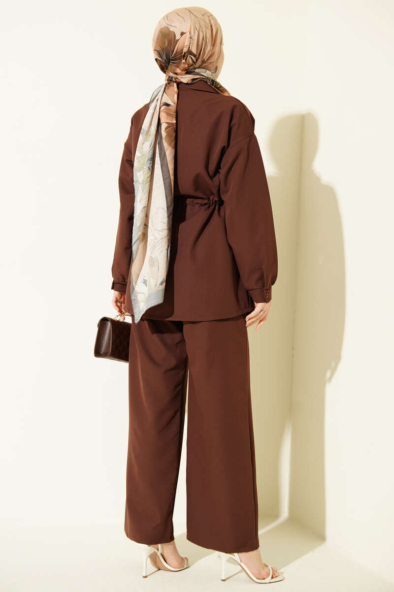 Kemerli Yarım Brit Düğmeli Modal Elbise Kahve