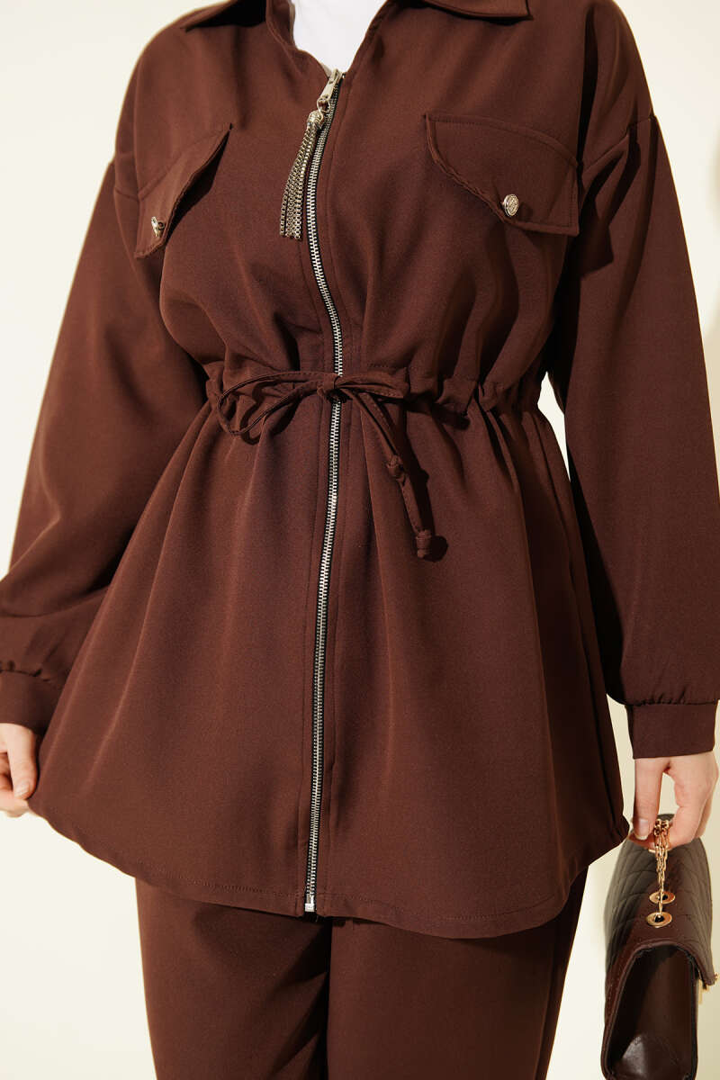 Kalp Desenli İnci Detaylı Tunik Kahve