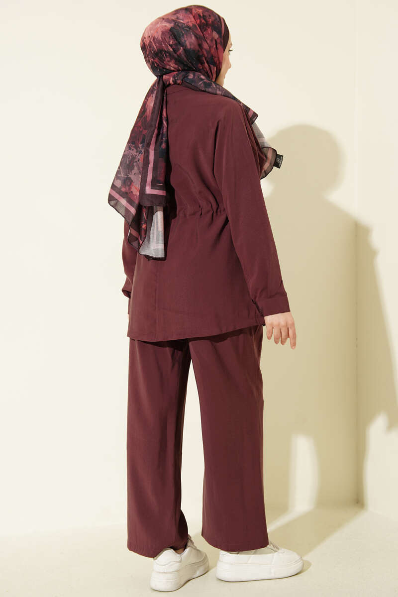 Cep Kapaklı Bel Tünelli Modal İkili Takım Bordo