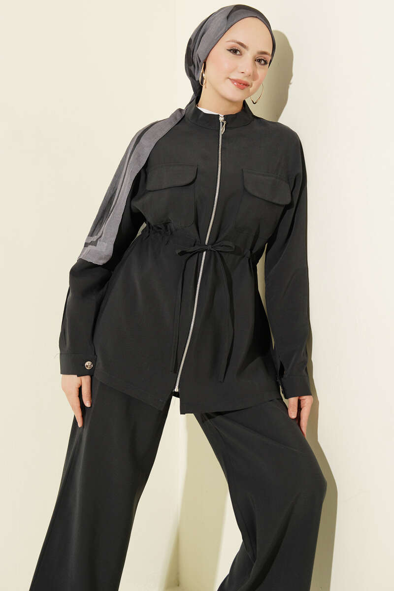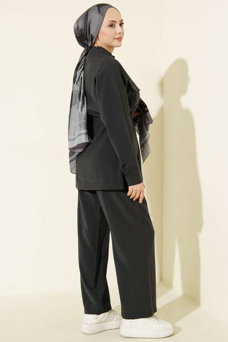 Cep Kapaklı Bel Tünelli Modal İkili Takım Füme