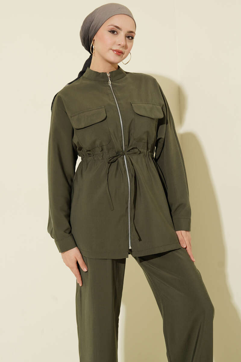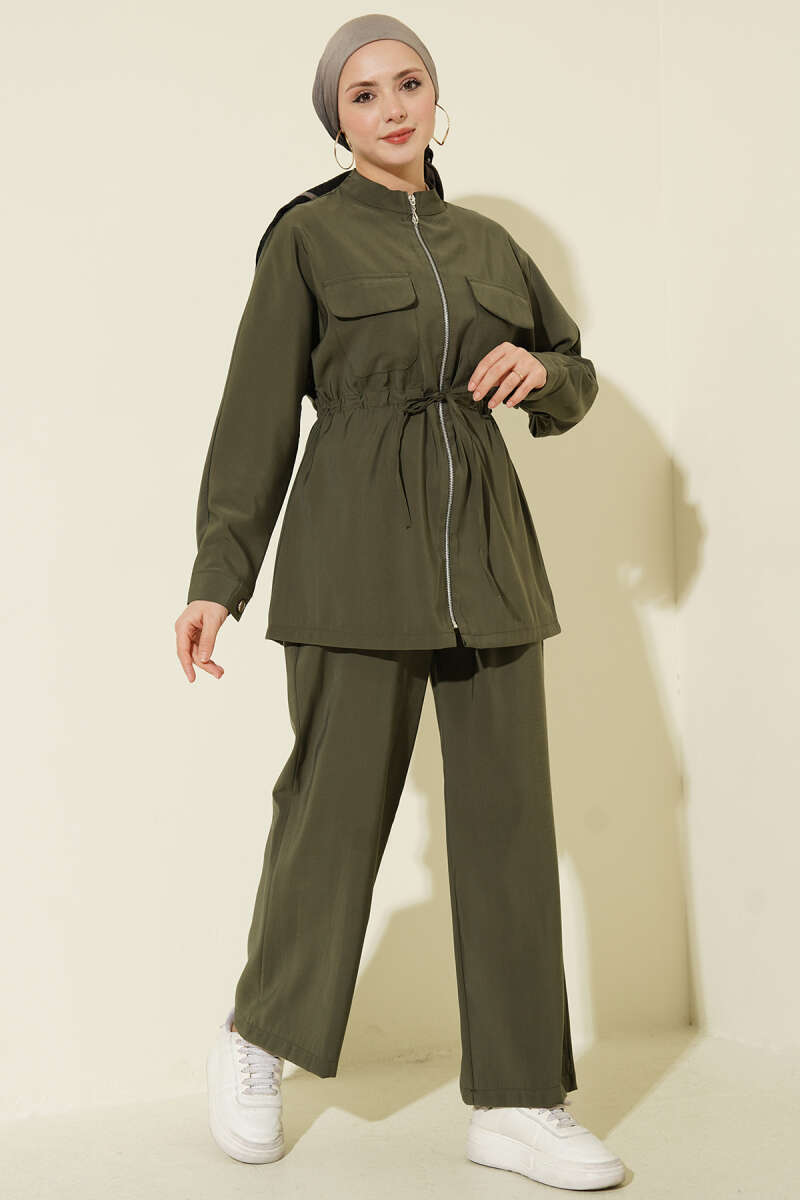 Cep Kapaklı Bel Tünelli Modal İkili Takım Haki