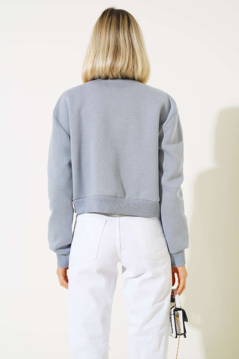 Çiçek Nakışlı Triko Süveter Gri