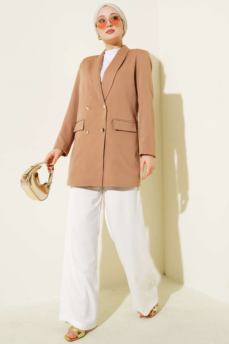 Cep Kapaklı Dabıl Blazer Ceket Latte