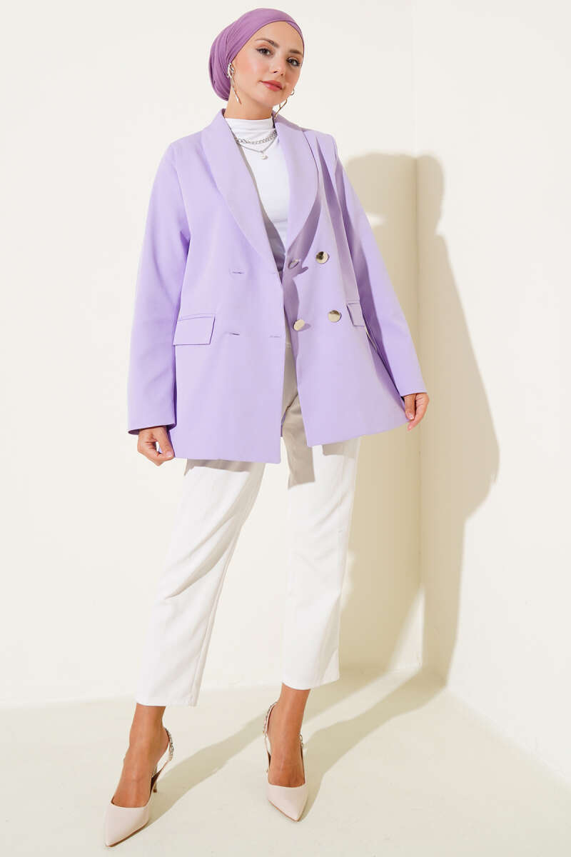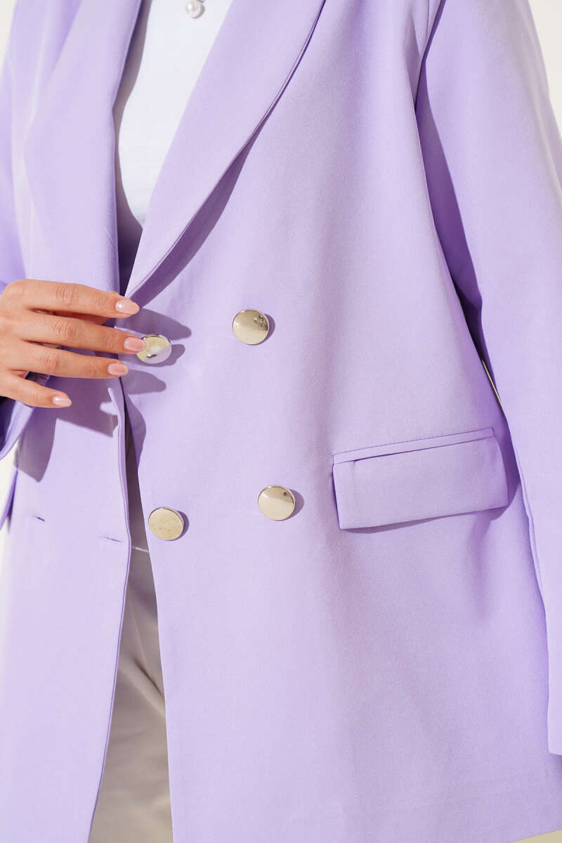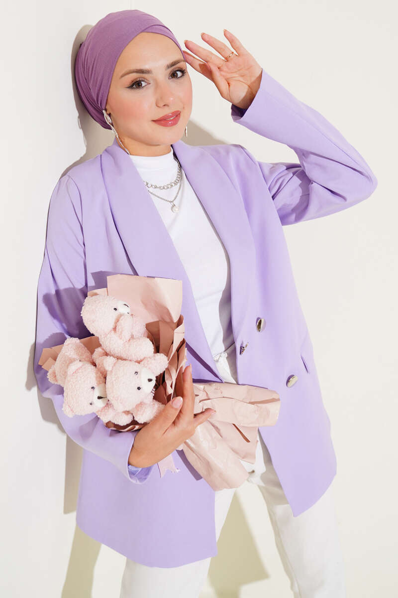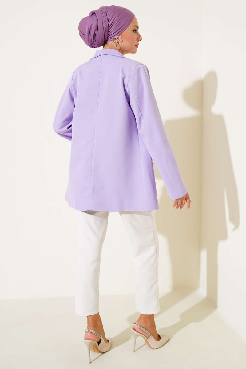 Tek Düğmeli Kemerli Sakallı Ceket Mor