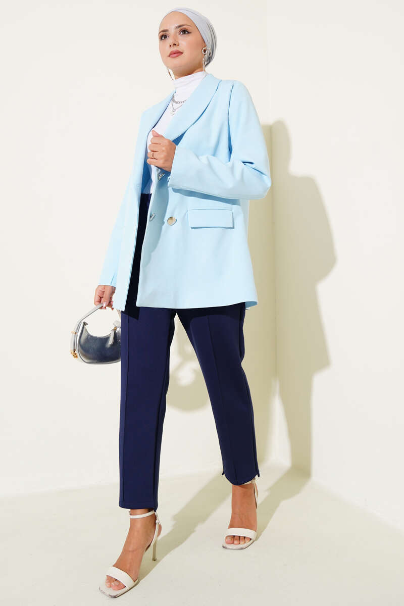 Tek Düğmeli Kemerli Sakallı Ceket Mor