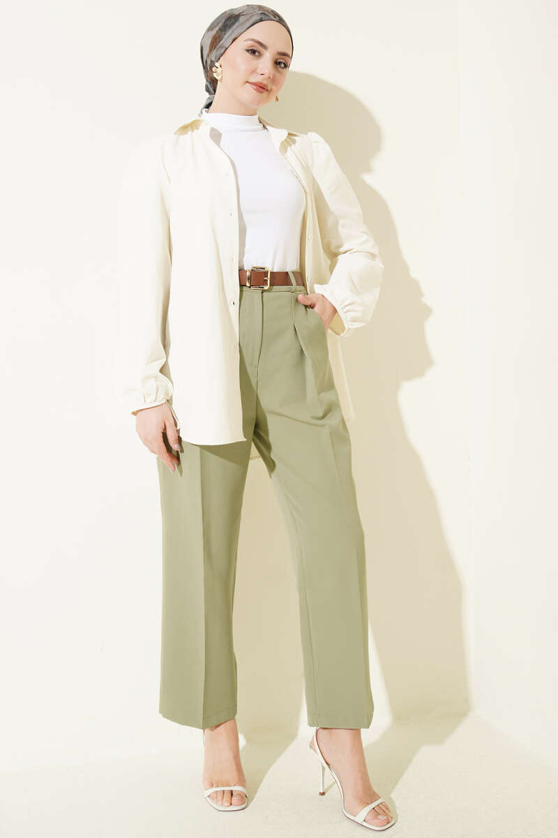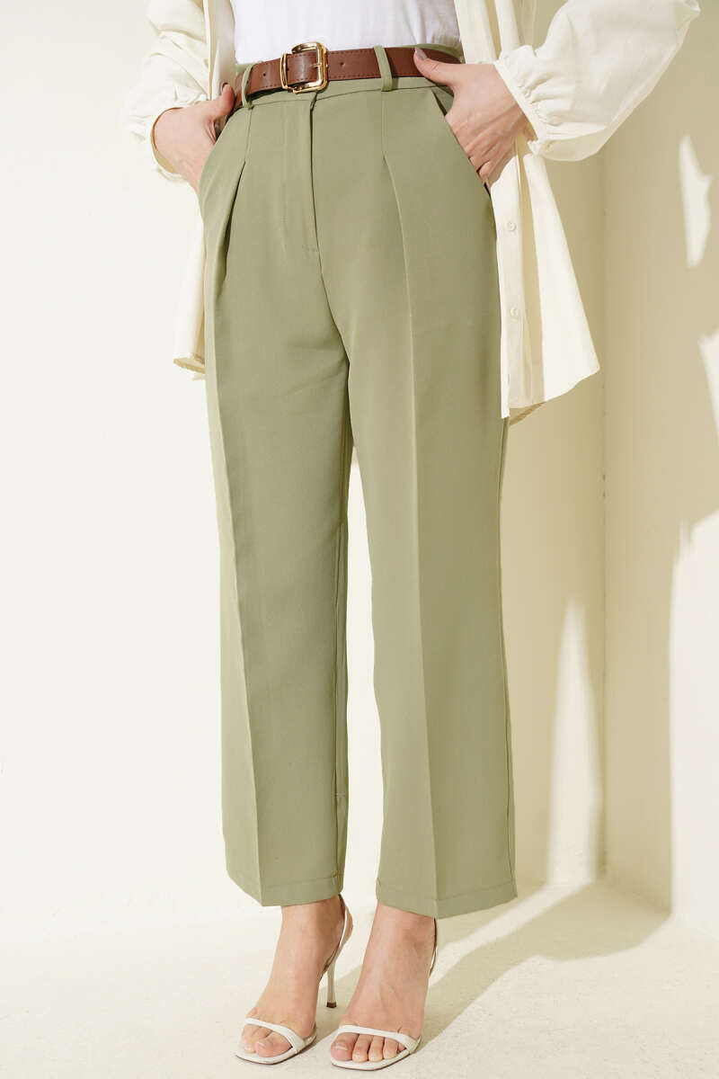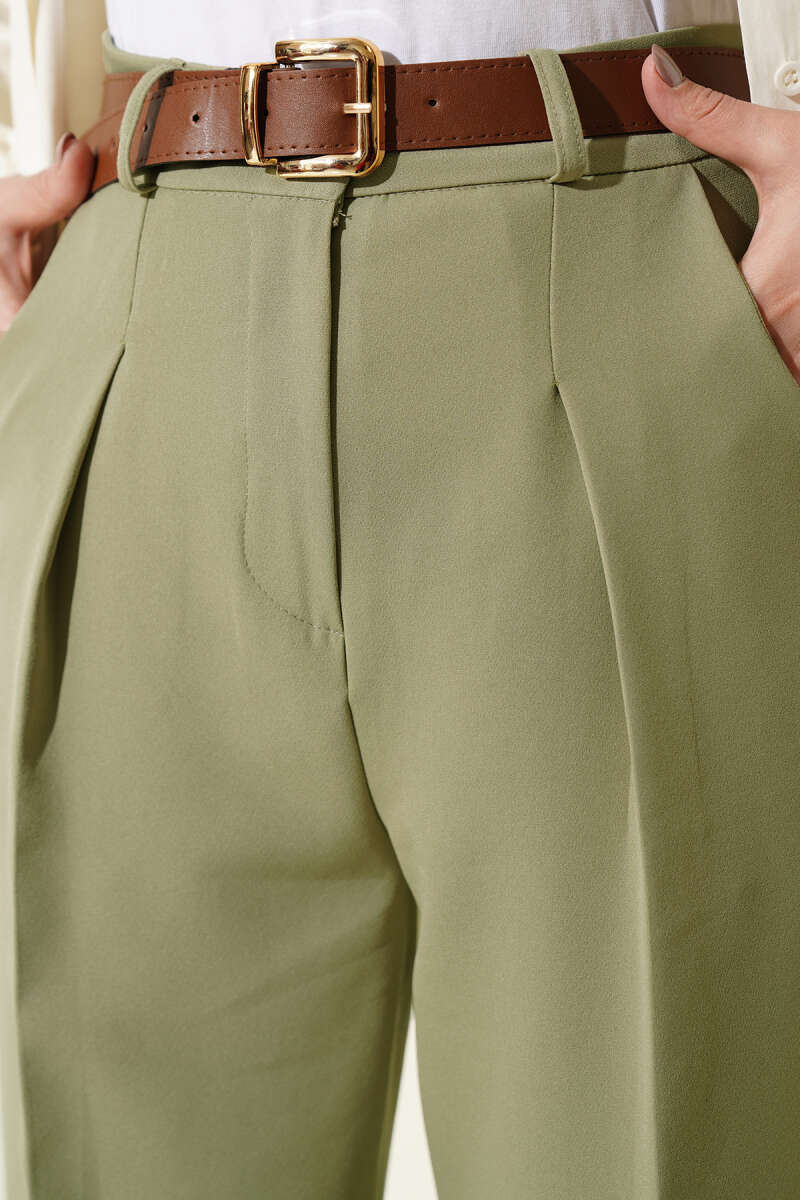 Cep Kapaklı Kemerli Pantolon Çağla Yeşili
