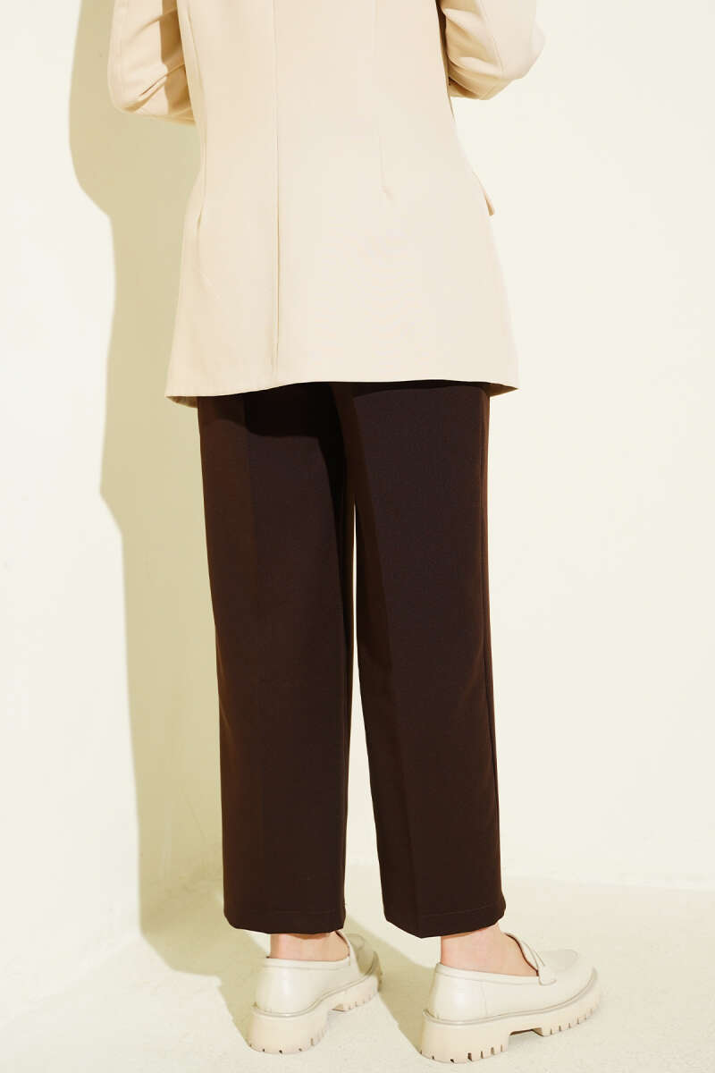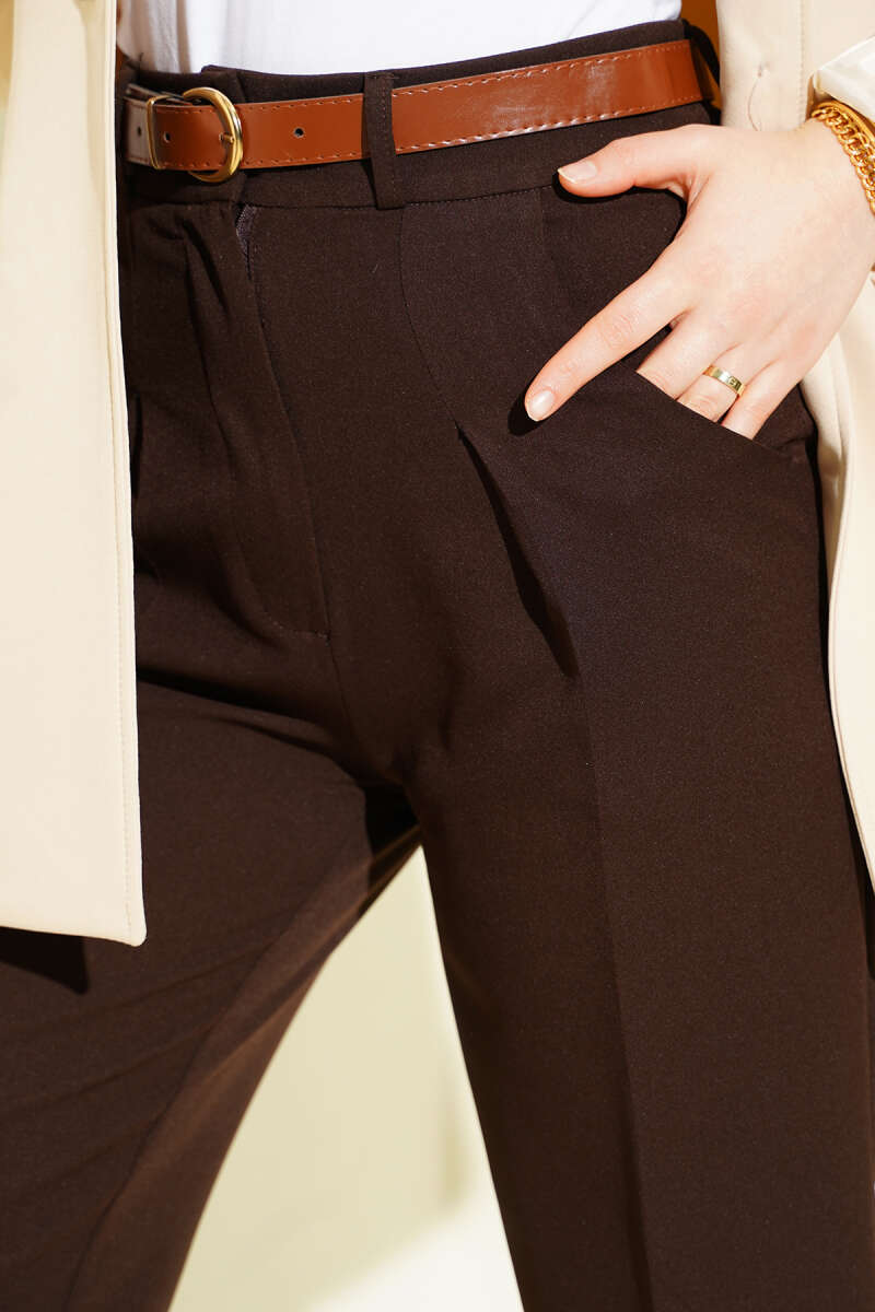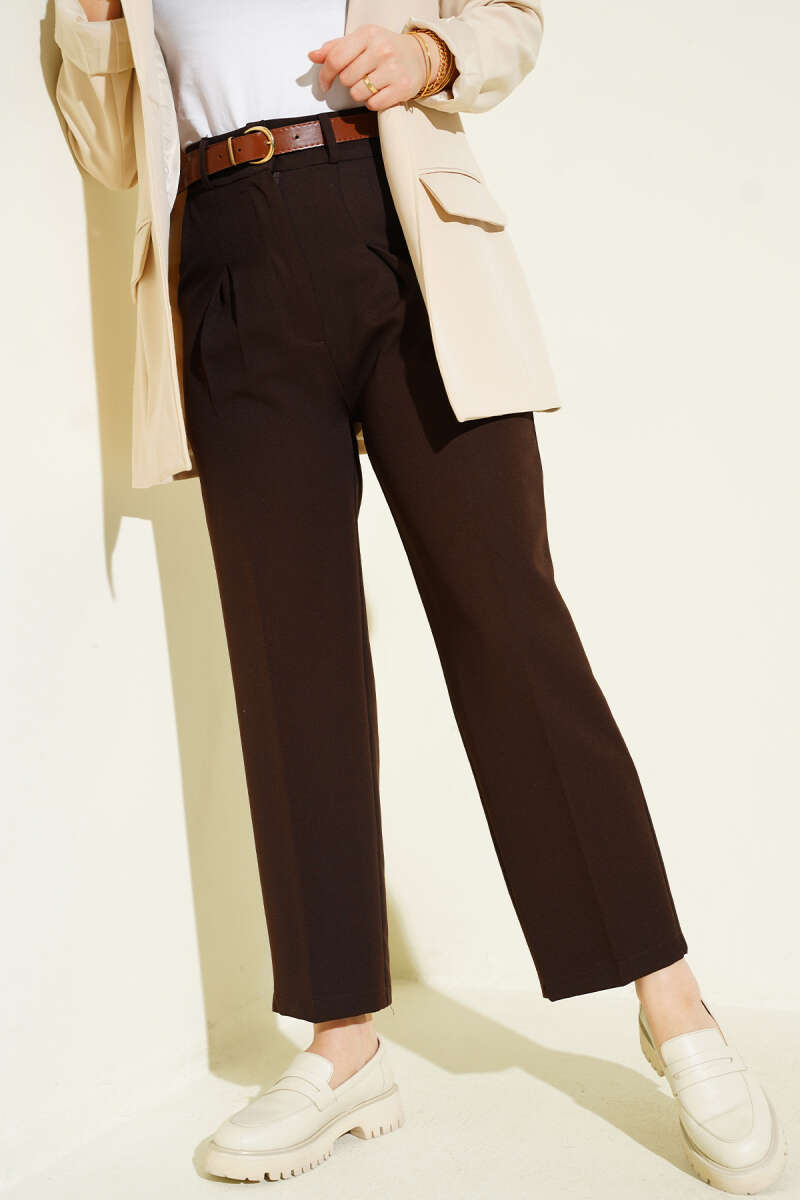Geniş Paça Kemerli Kumaş Pantolon Kahve