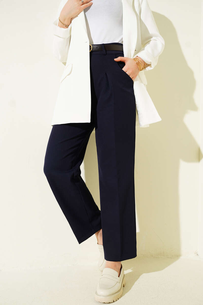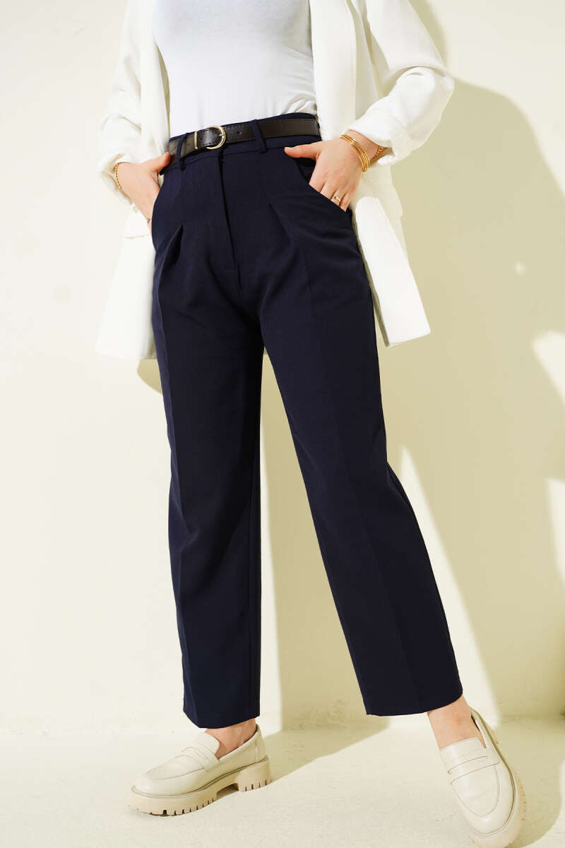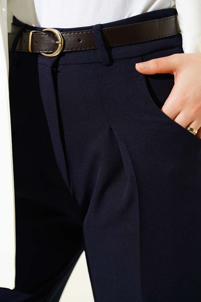 Cepli Keten Geniş Paça Pantolon Lacivert