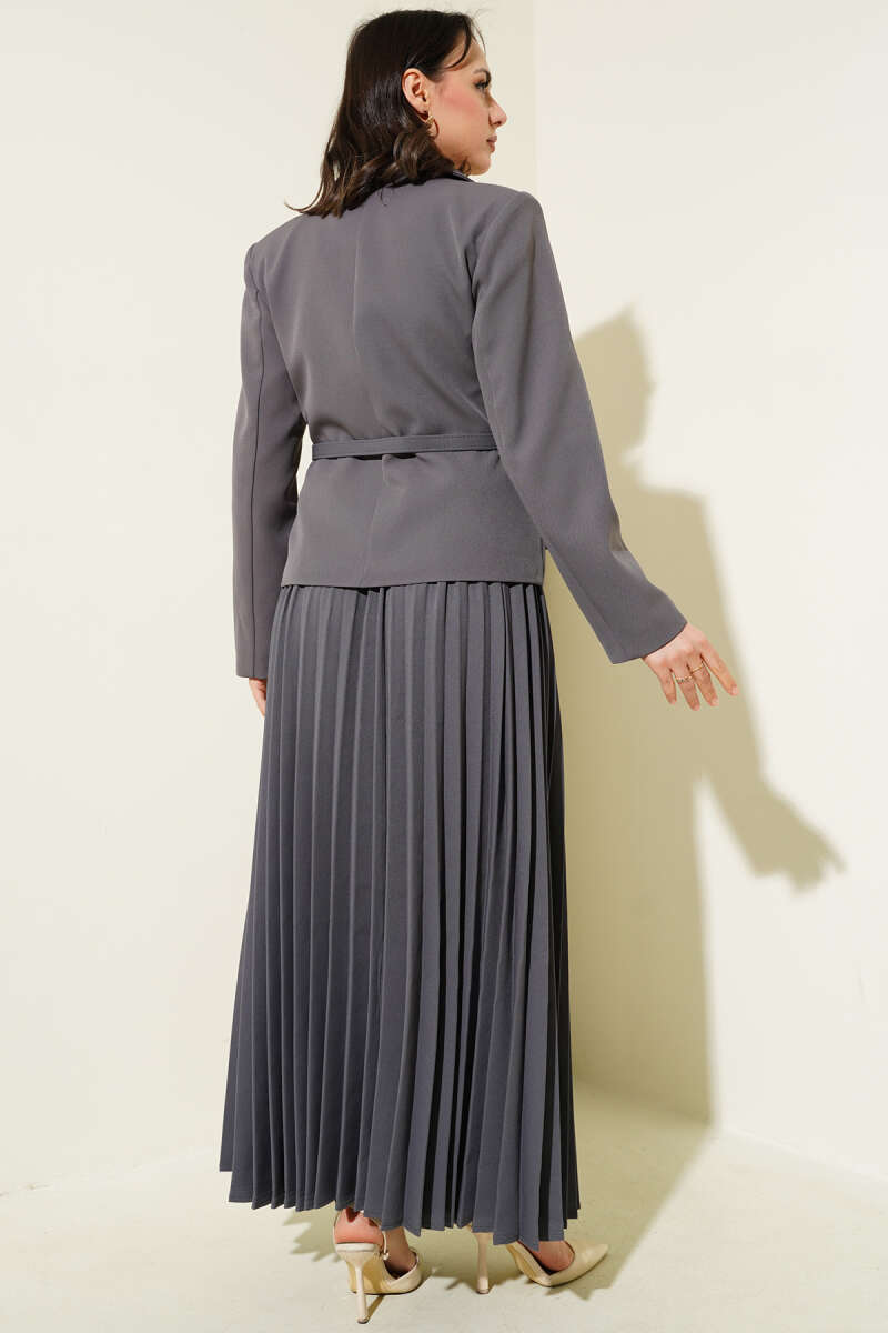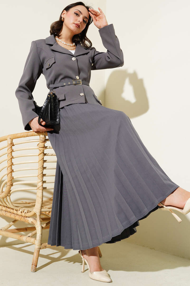 Cep Kapaklı Pileli Etekli İkili Takım Füme