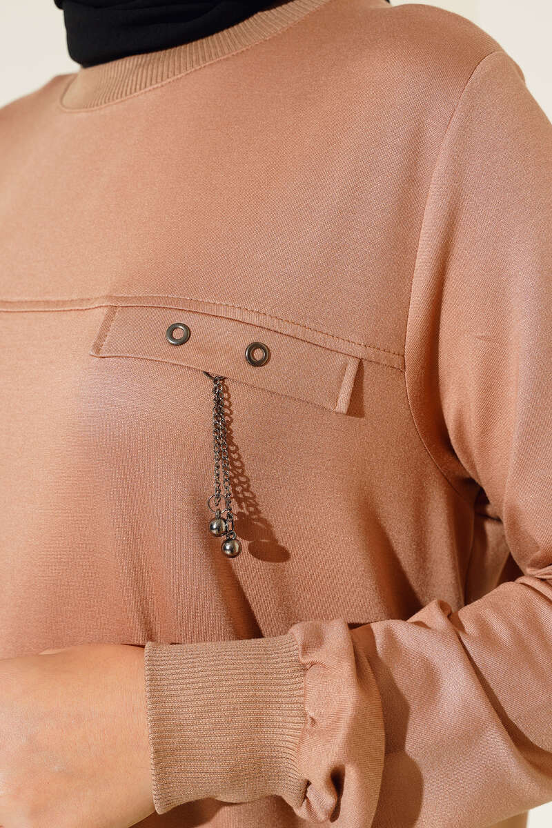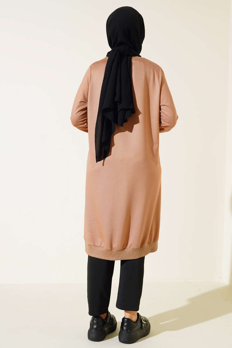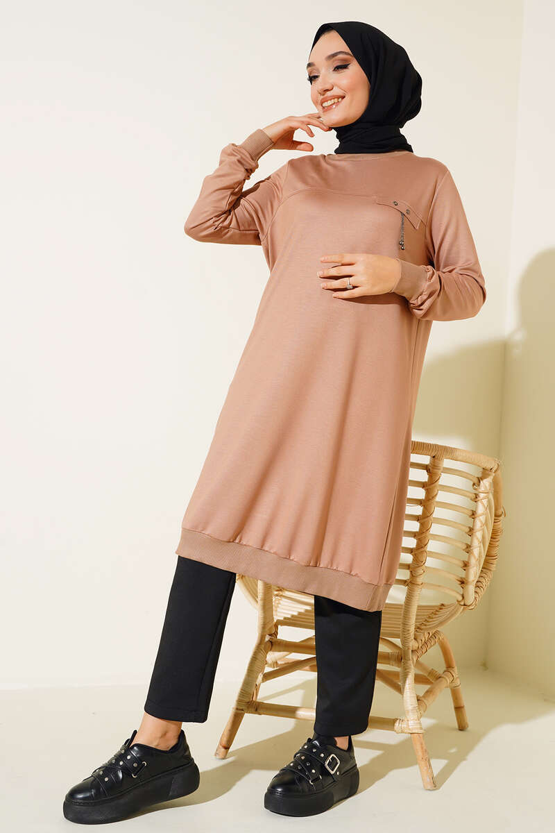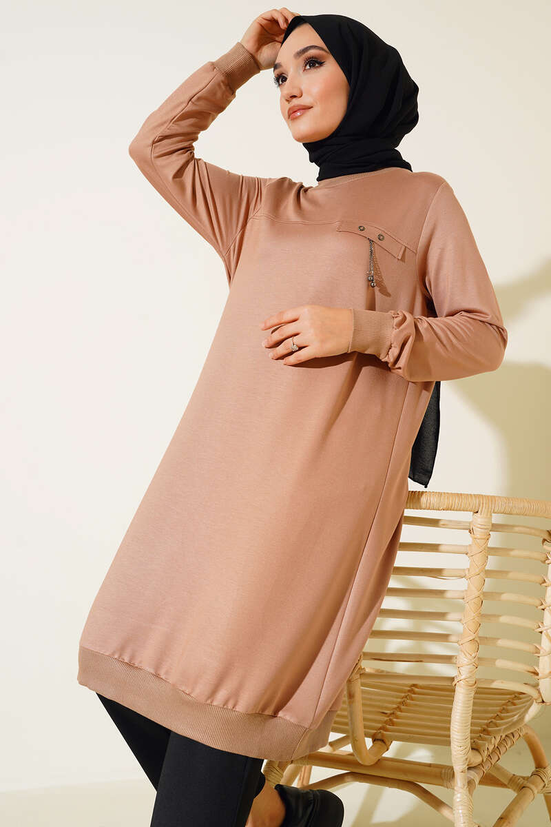 Tuniğimiz bisiklet yakalıdır. Bilekleri ve etek ucu ribanalıdır. Göğüs kısmında cep kapak detayı bulunmaktadır ve zincir süslemelidir. Renk seçenekleri bulunmaktadır.