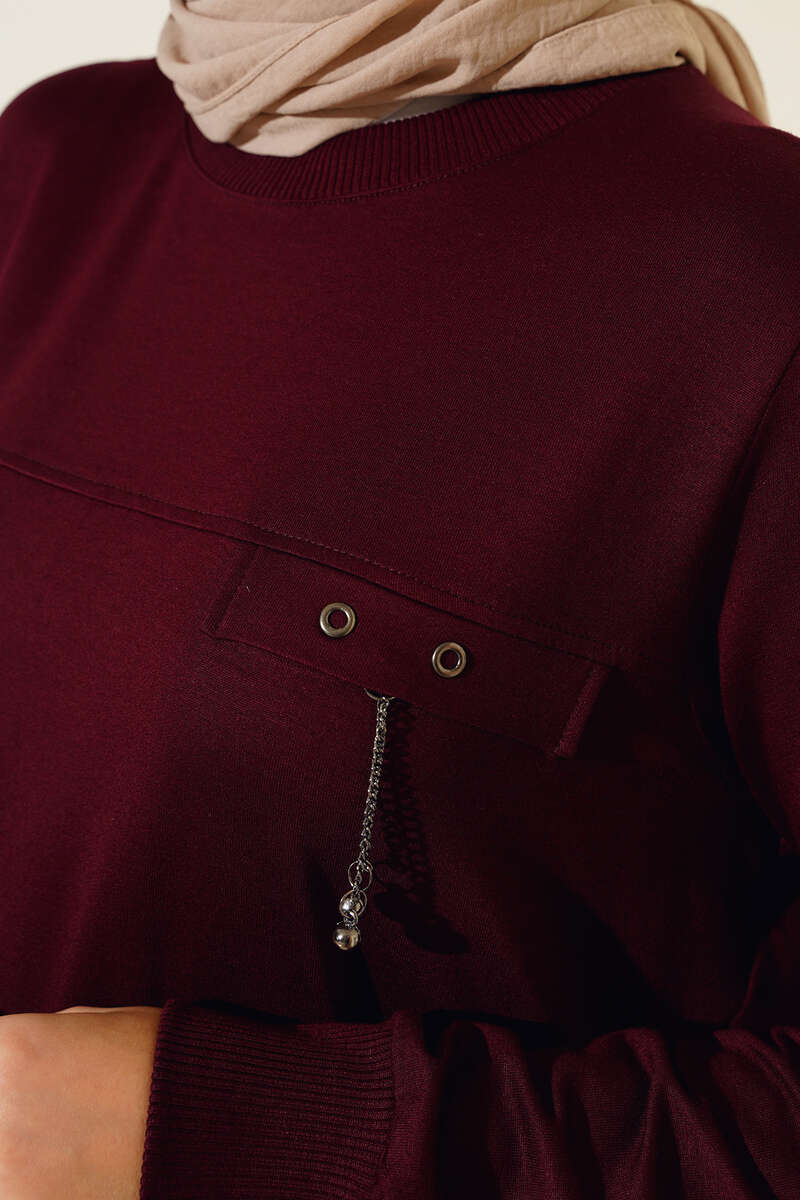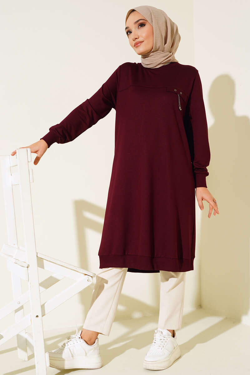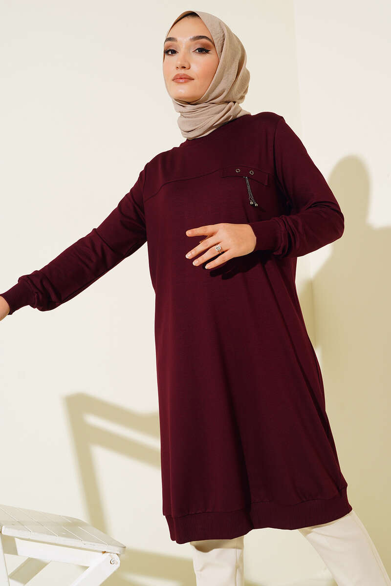 Tuniğimiz bisiklet yakalıdır. Bilekleri ve etek ucu ribanalıdır. Göğüs kısmında cep kapak detayı bulunmaktadır ve zincir süslemelidir. Renk seçenekleri bulunmaktadır.
