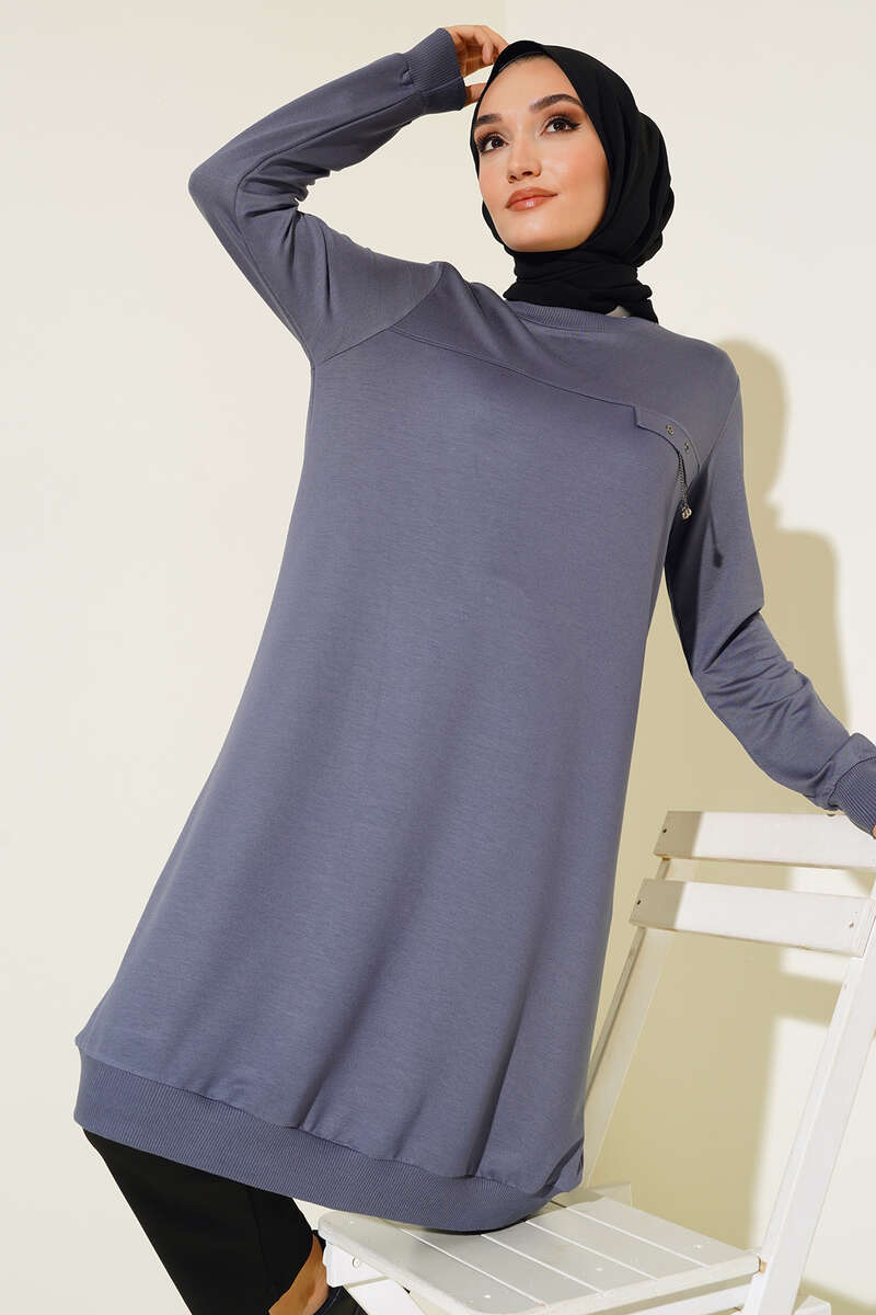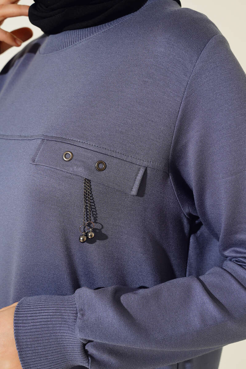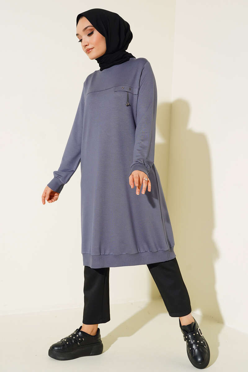 Tuniğimiz bisiklet yakalıdır. Bilekleri ve etek ucu ribanalıdır. Göğüs kısmında cep kapak detayı bulunmaktadır ve zincir süslemelidir. Renk seçenekleri bulunmaktadır.
