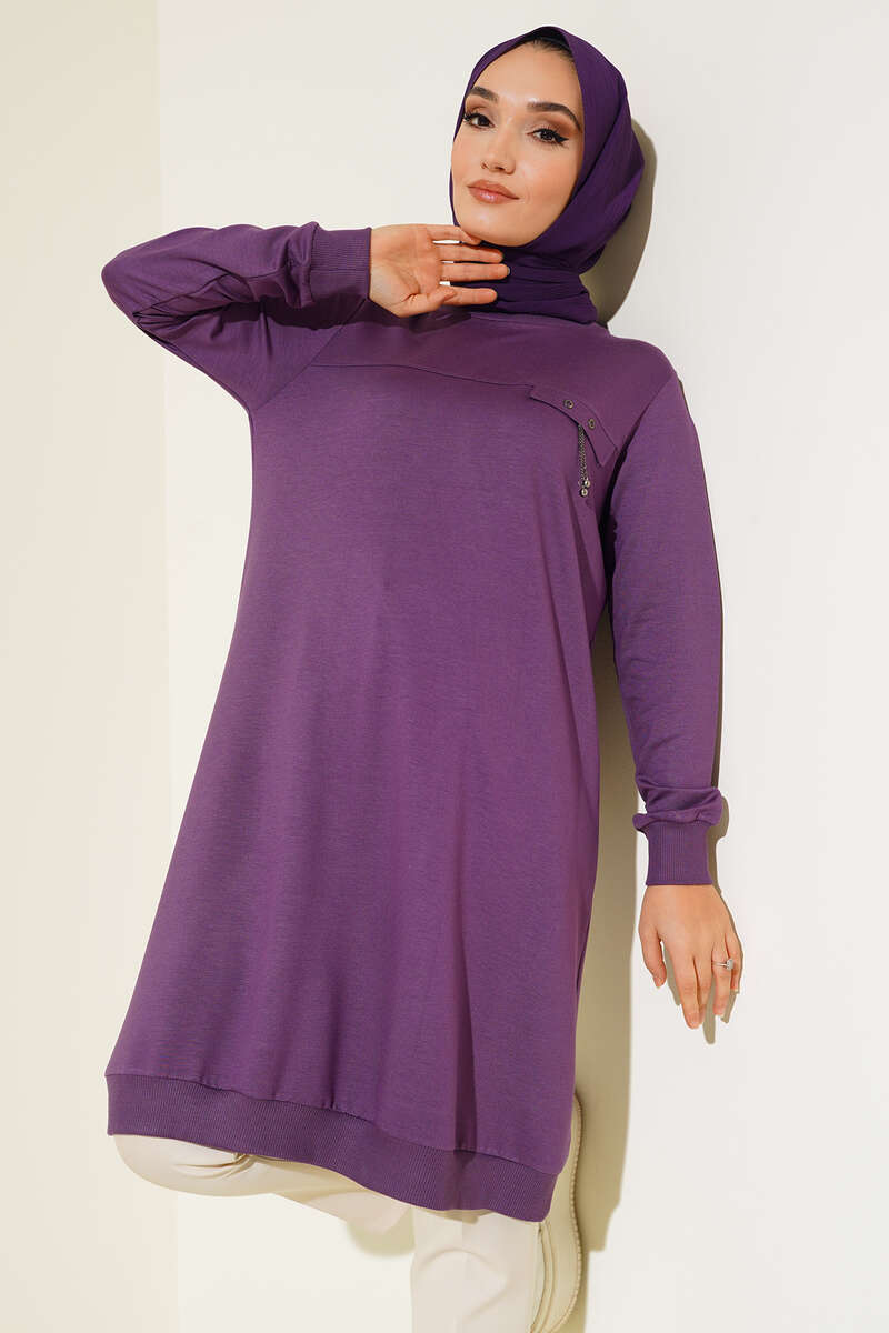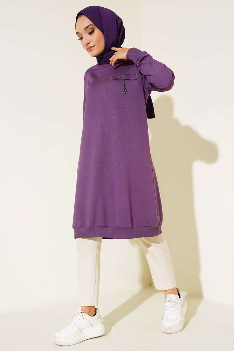 Cep Kapaklı Uzun Tunik Lila