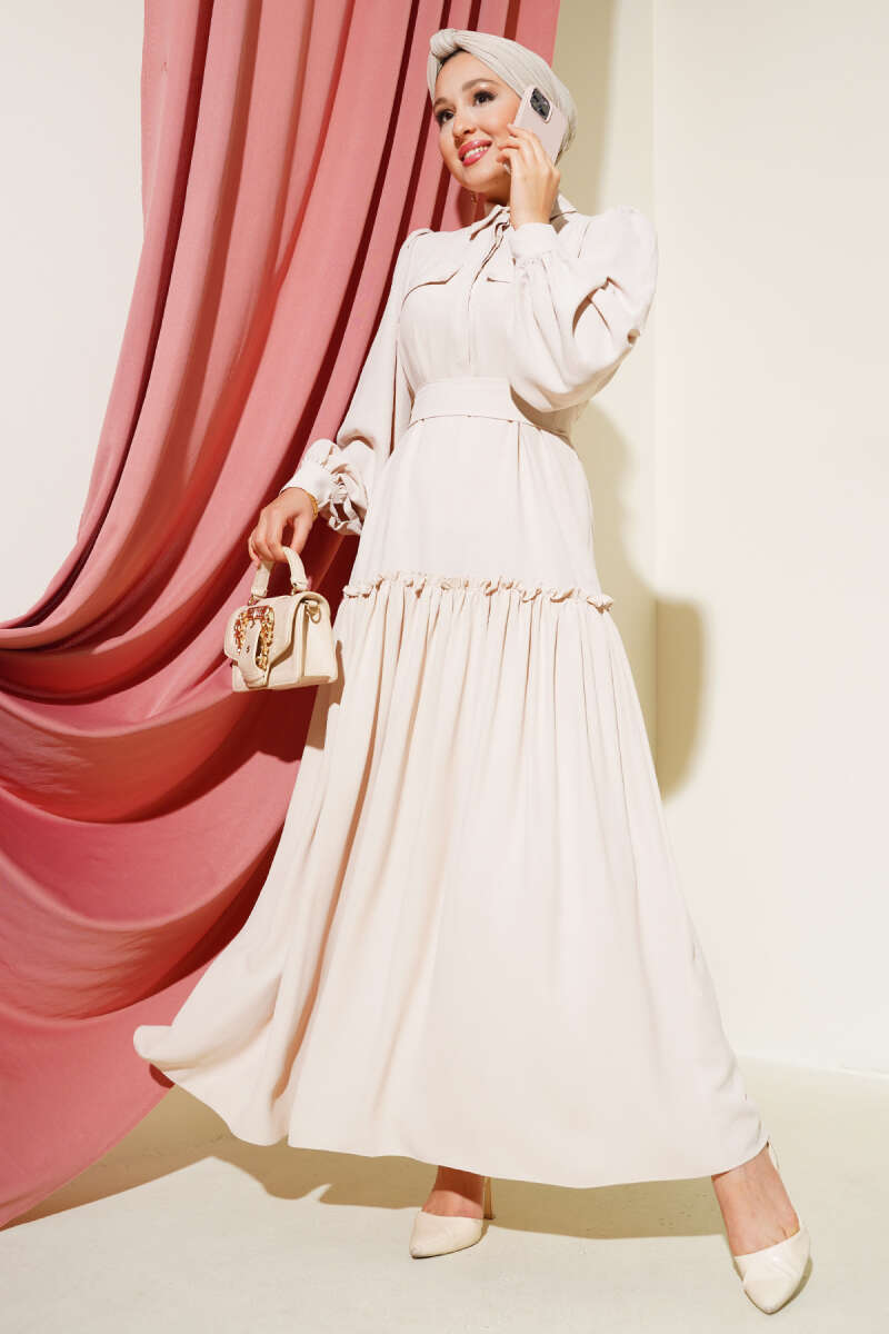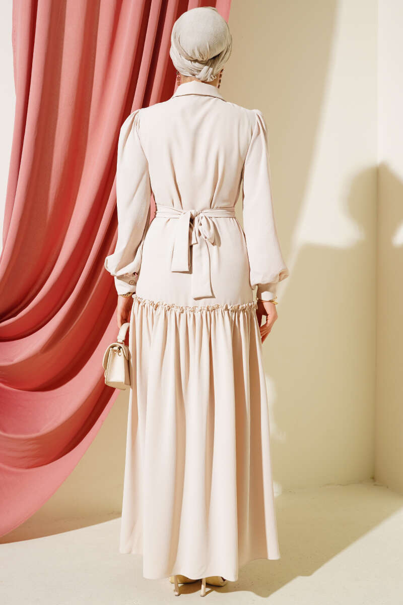 İnce Çizgili Boydan Düğmeli Elbise Taş