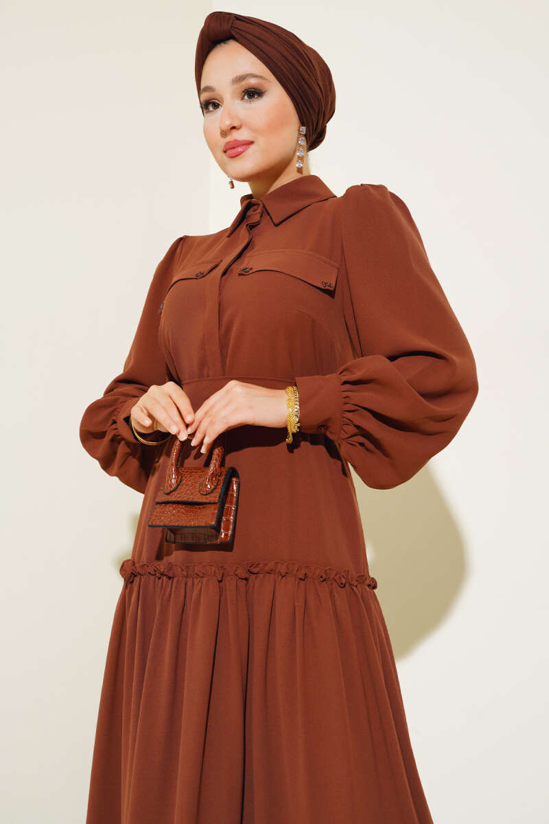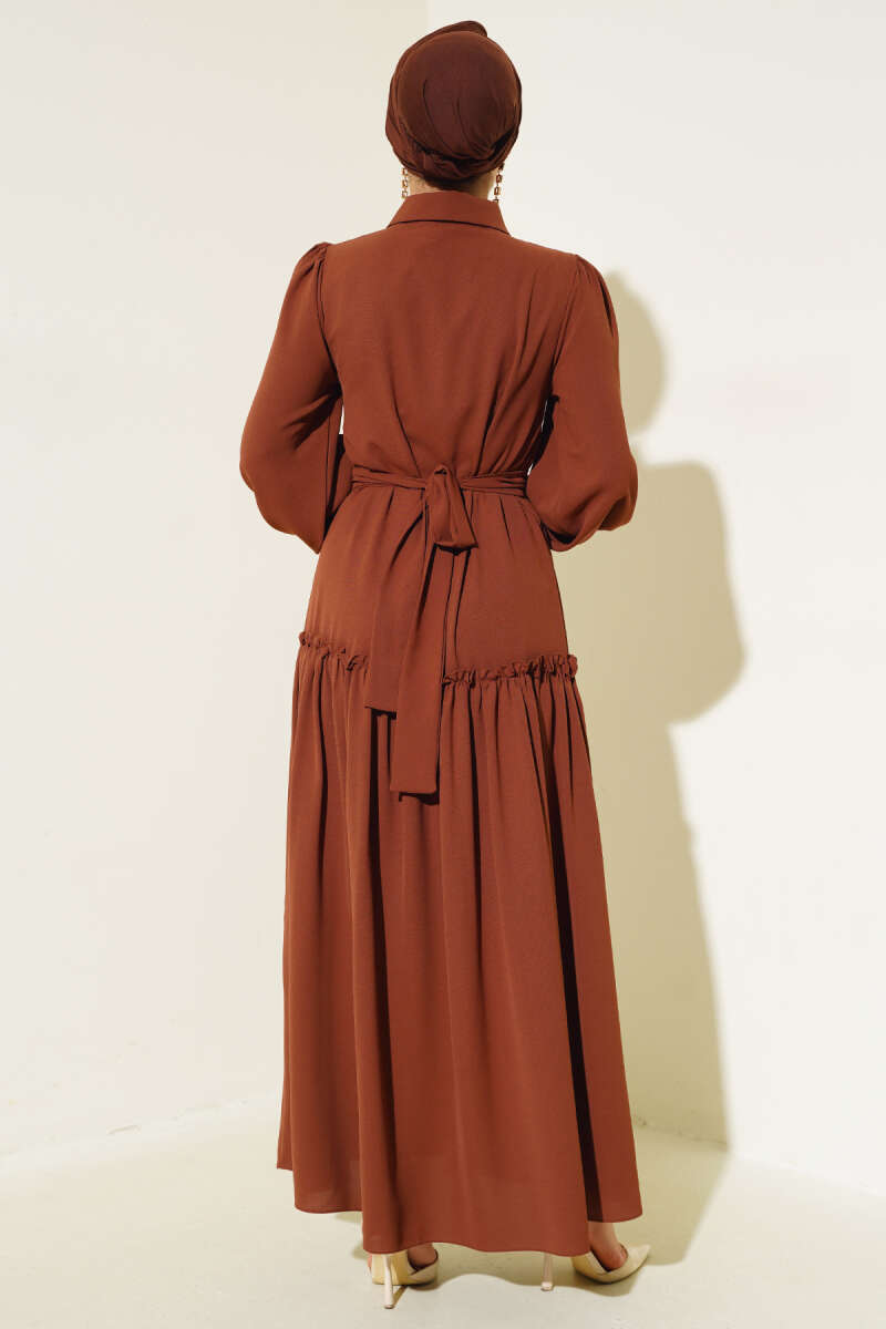 İnce Çizgili Boydan Düğmeli Elbise Taş