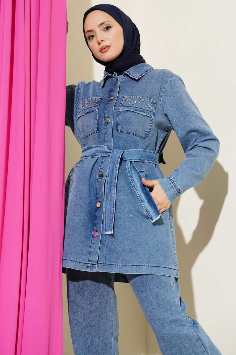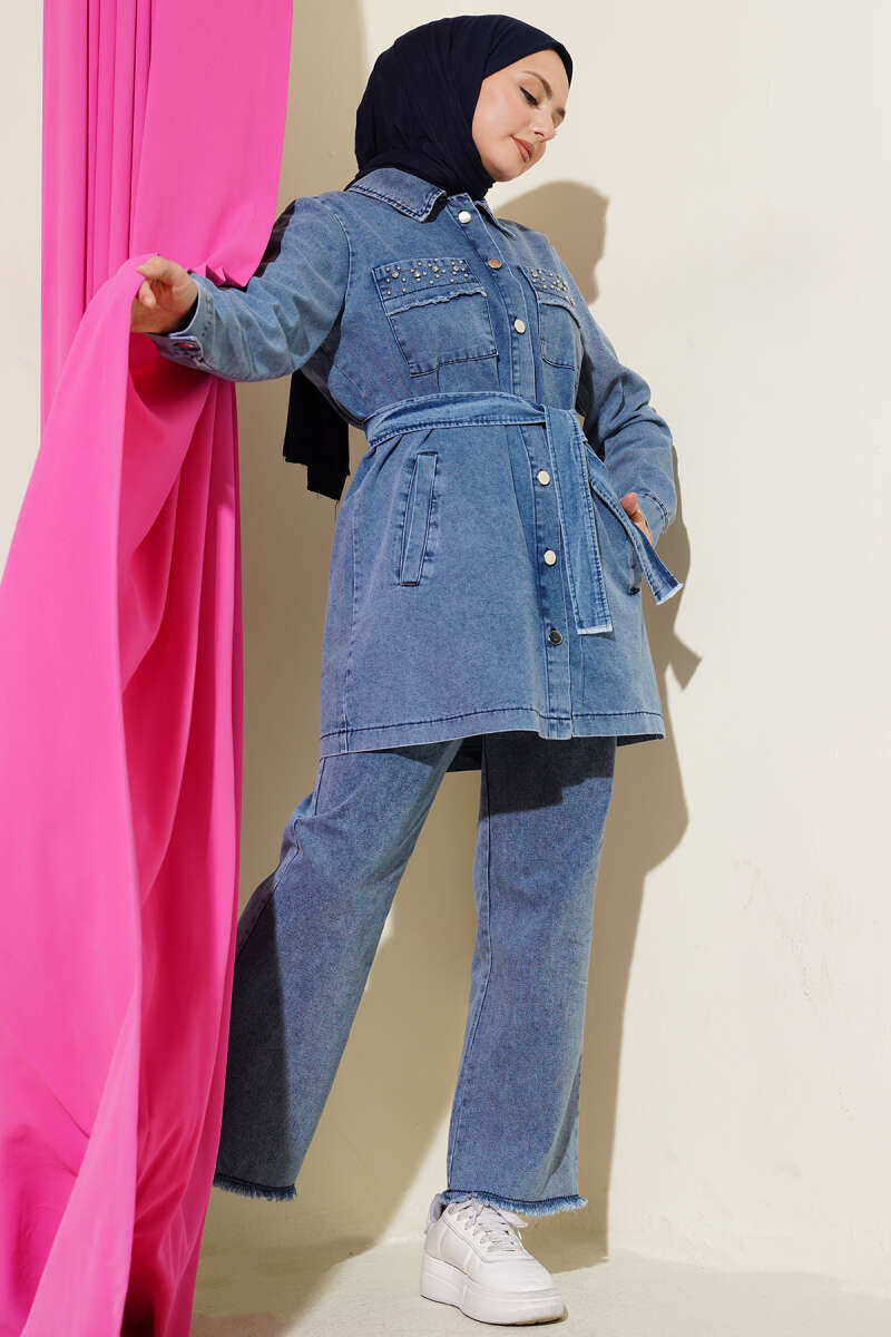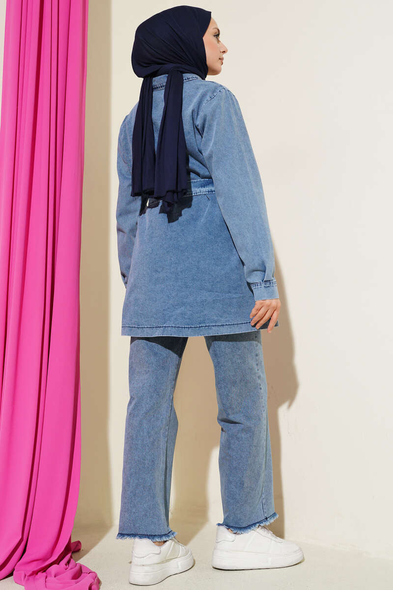 Cep Kapaklı Bel Tünelli Modal İkili Takım İndigo
