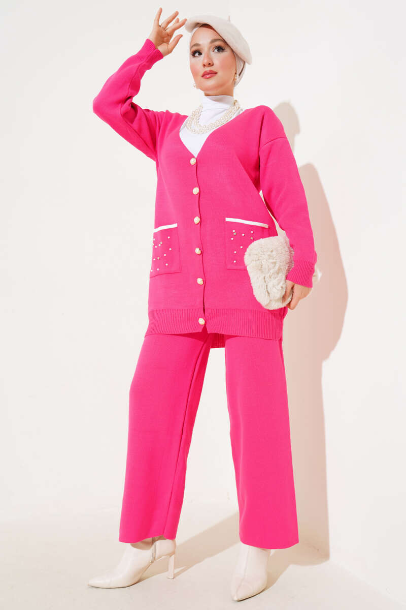 Çiçek Motifli Triko İkili Takım Pudra