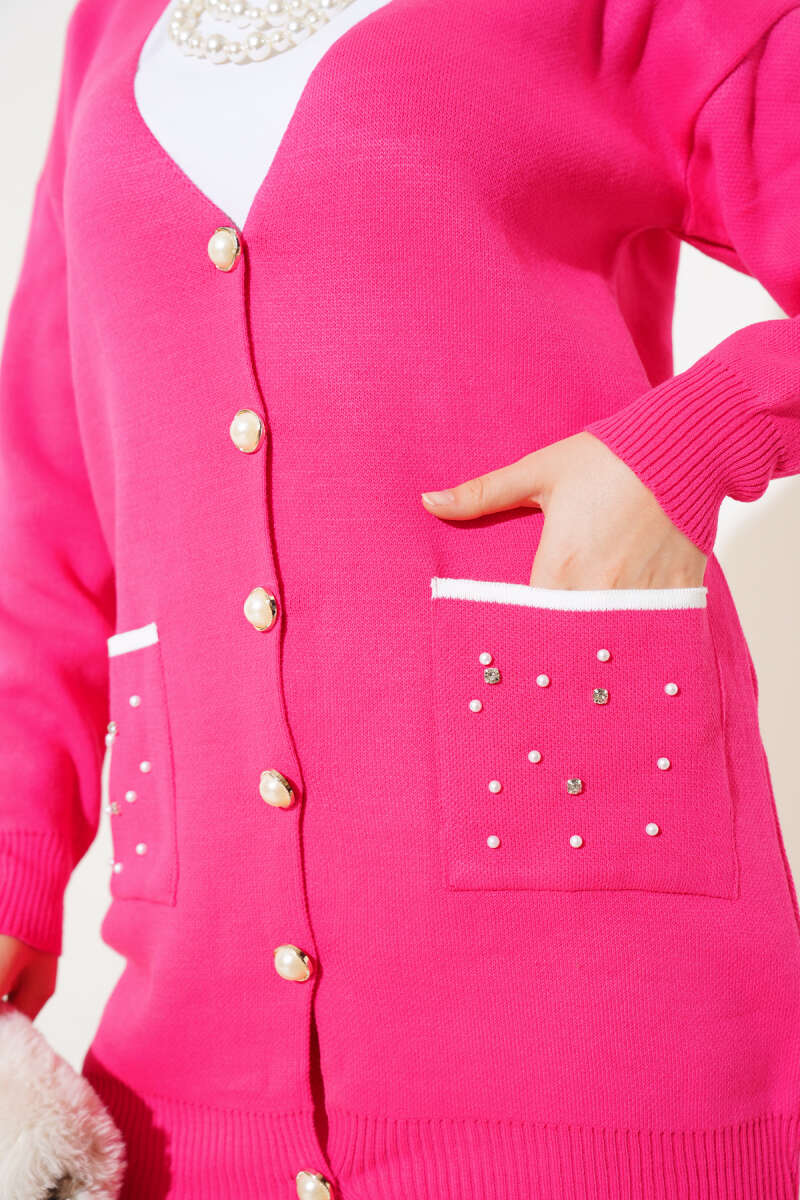 Baklava Desen Düğmeli Triko Hırka İkili Takım Bordo