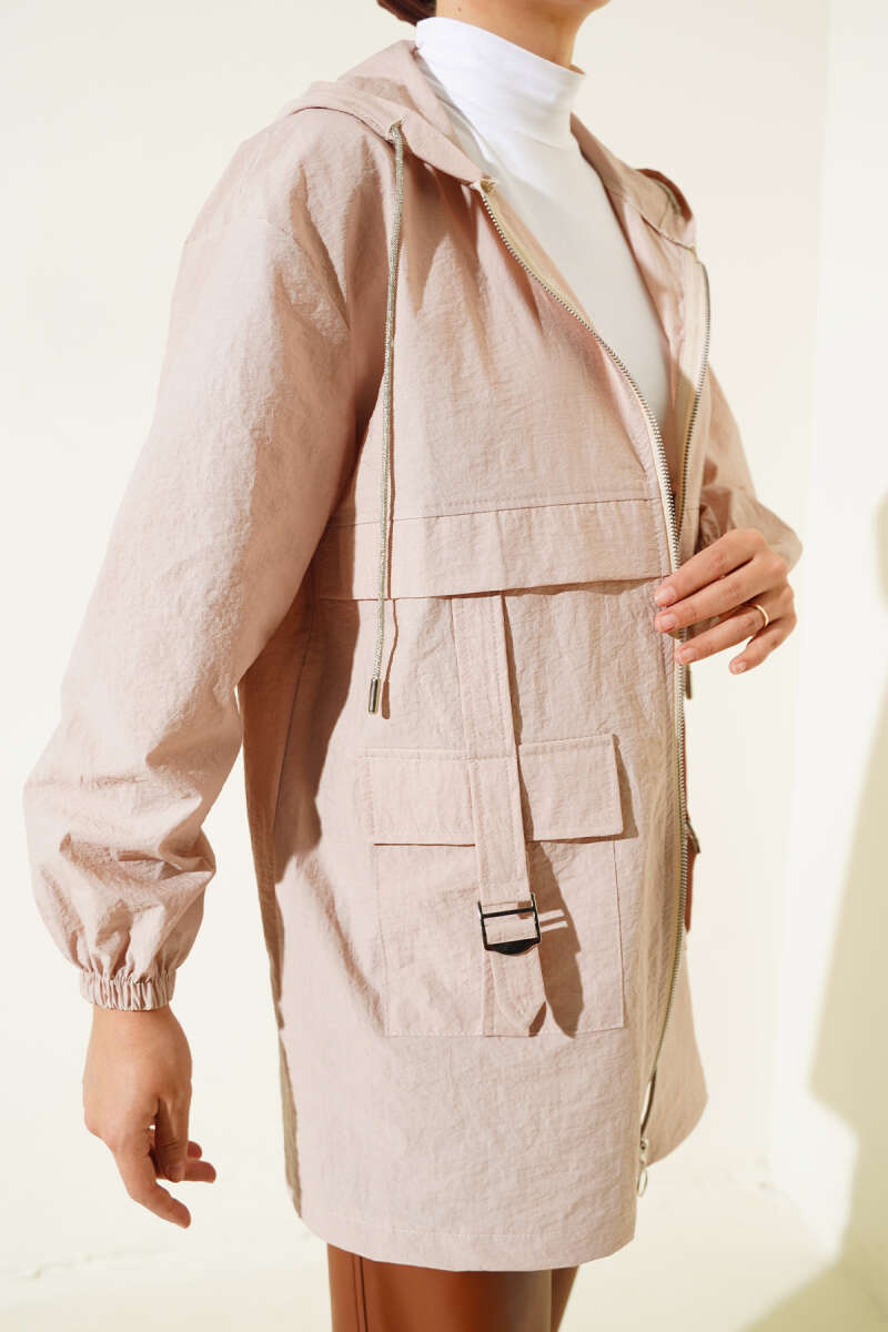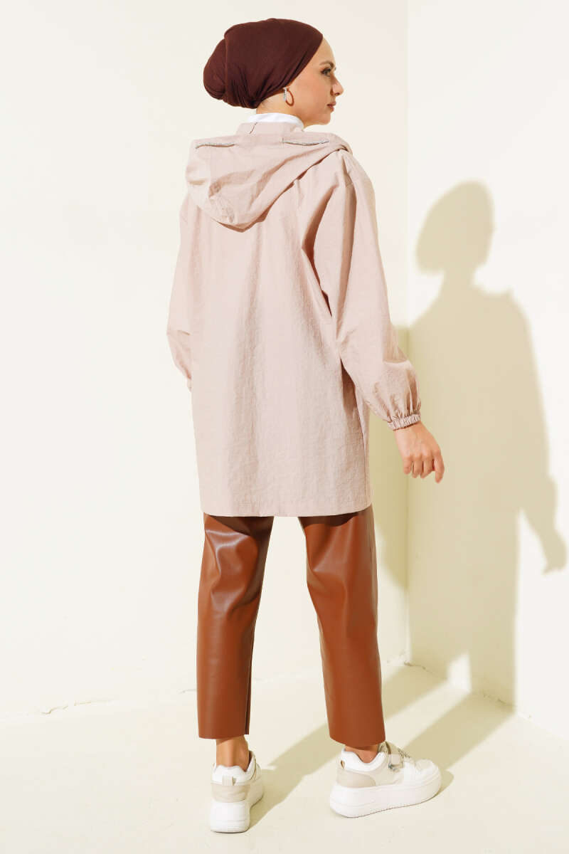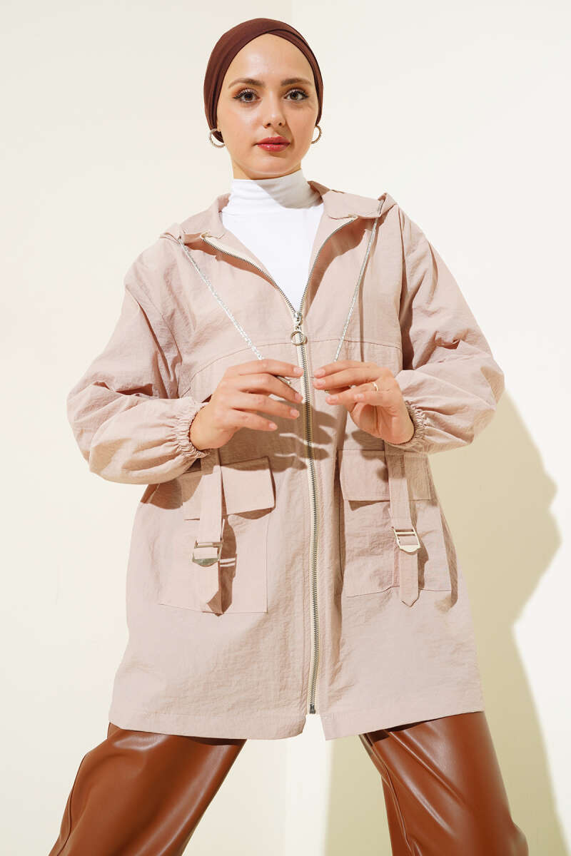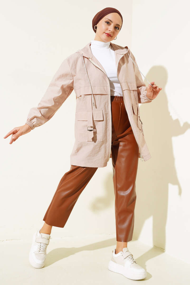 Cep Tokalı Fermuarlı Kap Latte