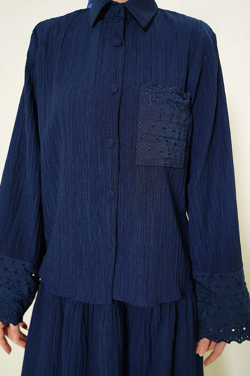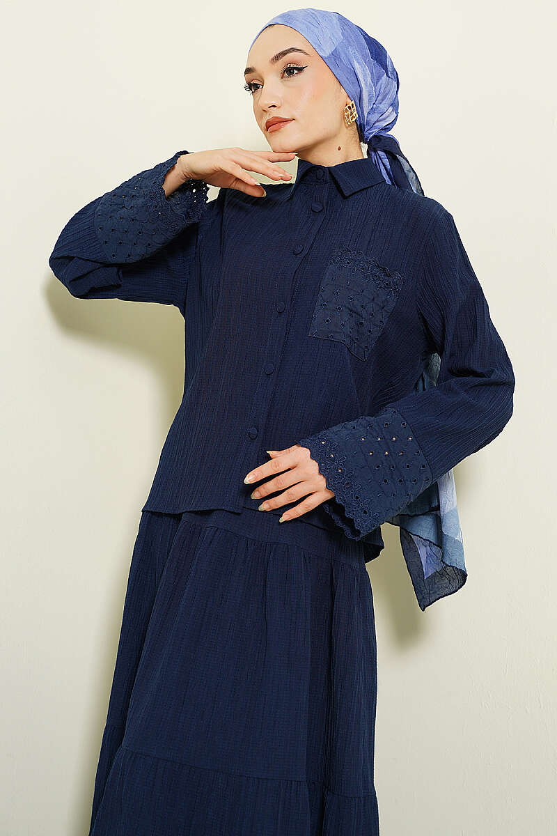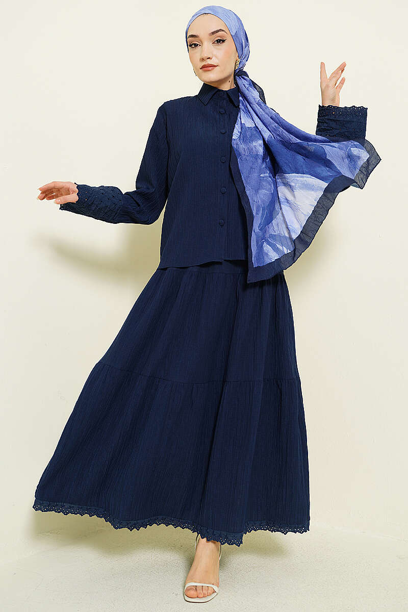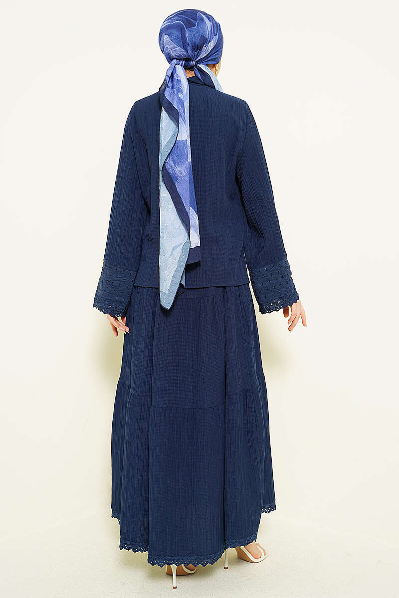 Cep ve Bilek Brodeli Krinkıl Etekli Takım Lacivert