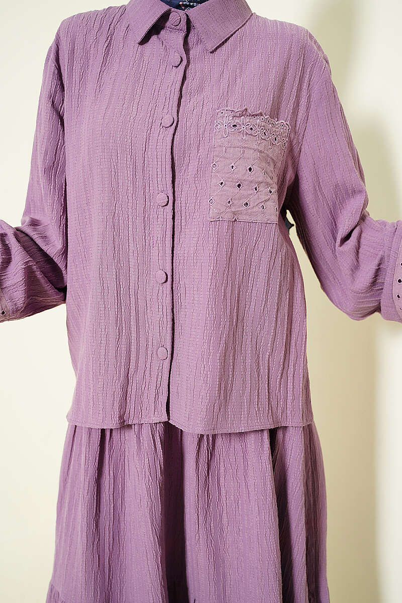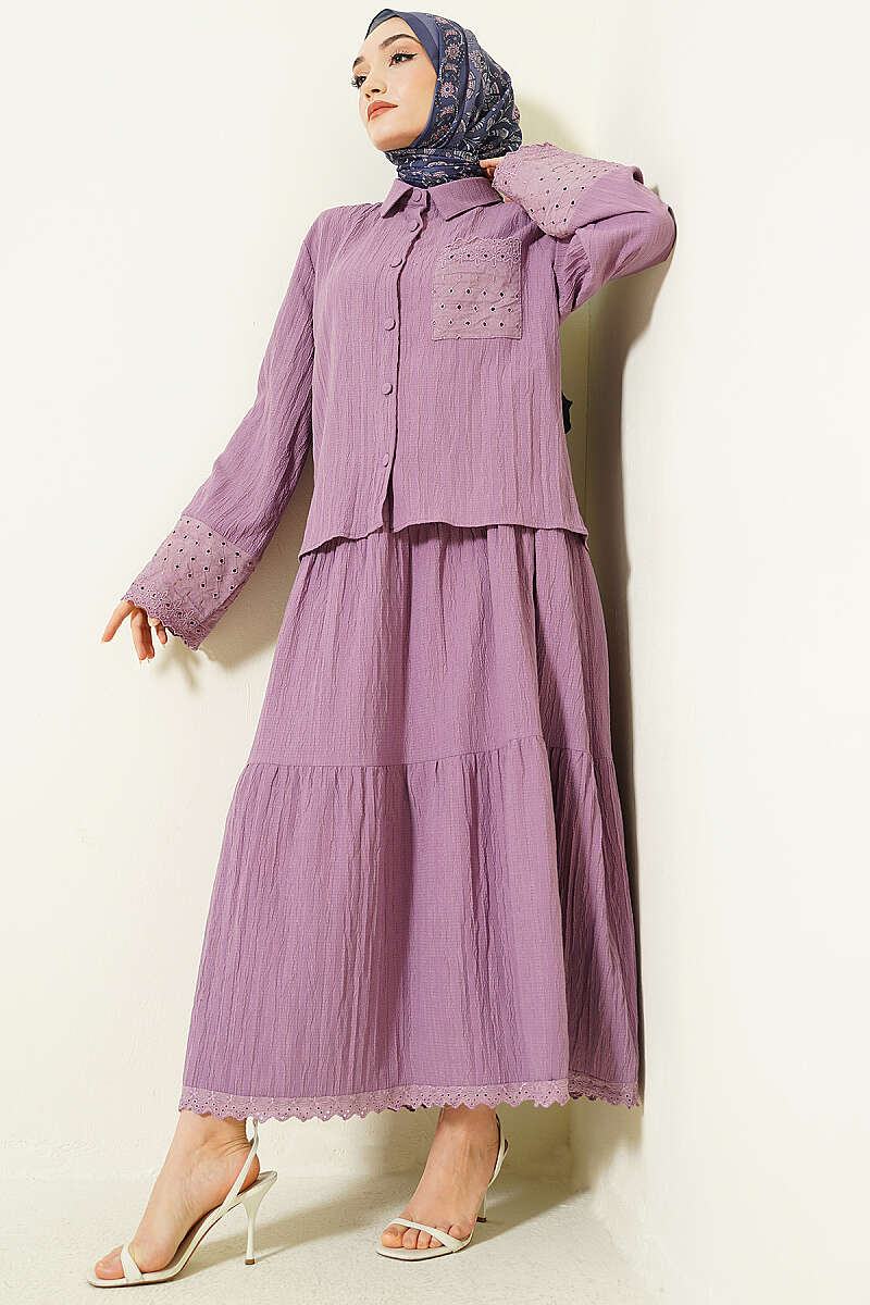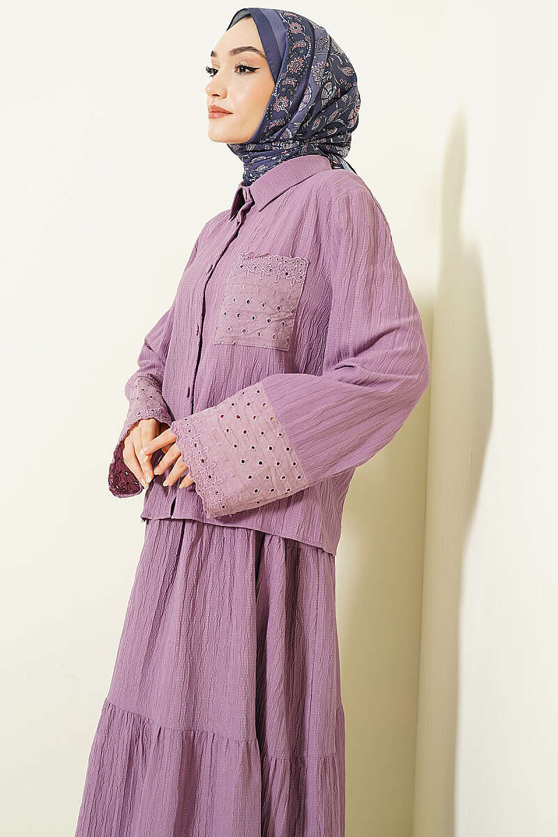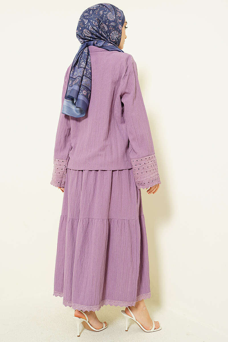 Cep ve Bilek Brodeli Krinkıl Etekli Takım Lila