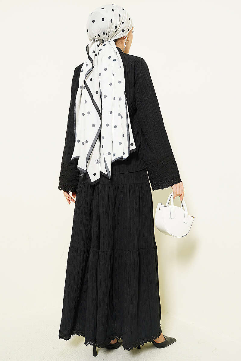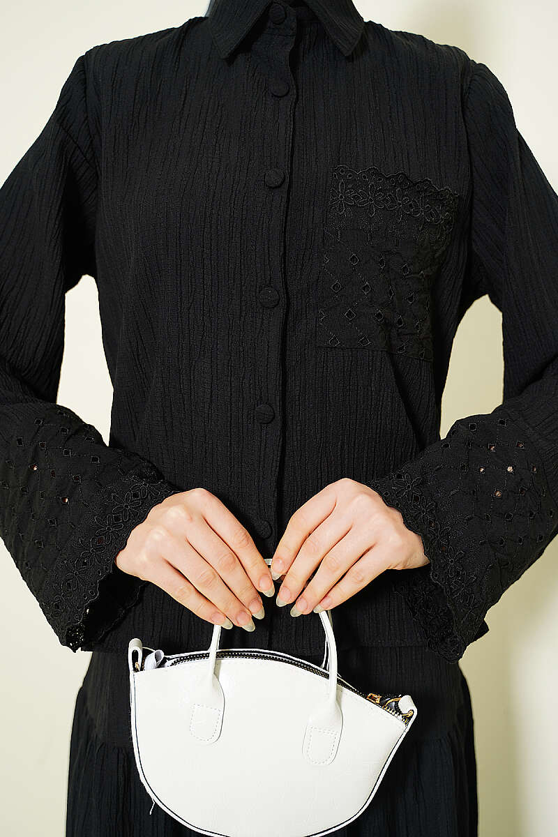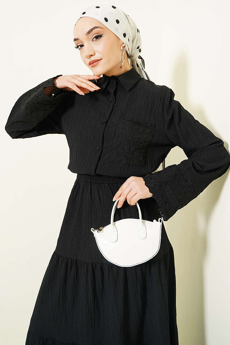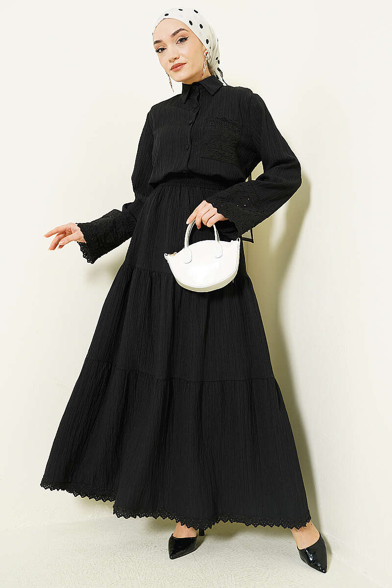Cep ve Bilek Brodeli Krinkıl Etekli Takım Siyah