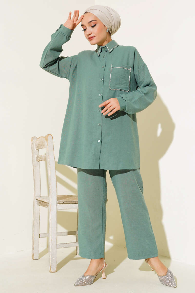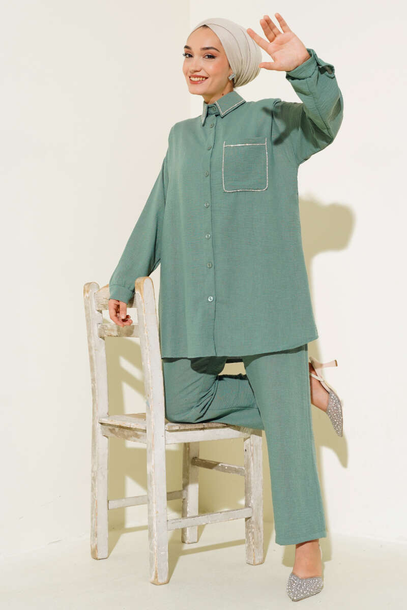 Çoban Dikişli Triko Tunik İkili Takım Nefti