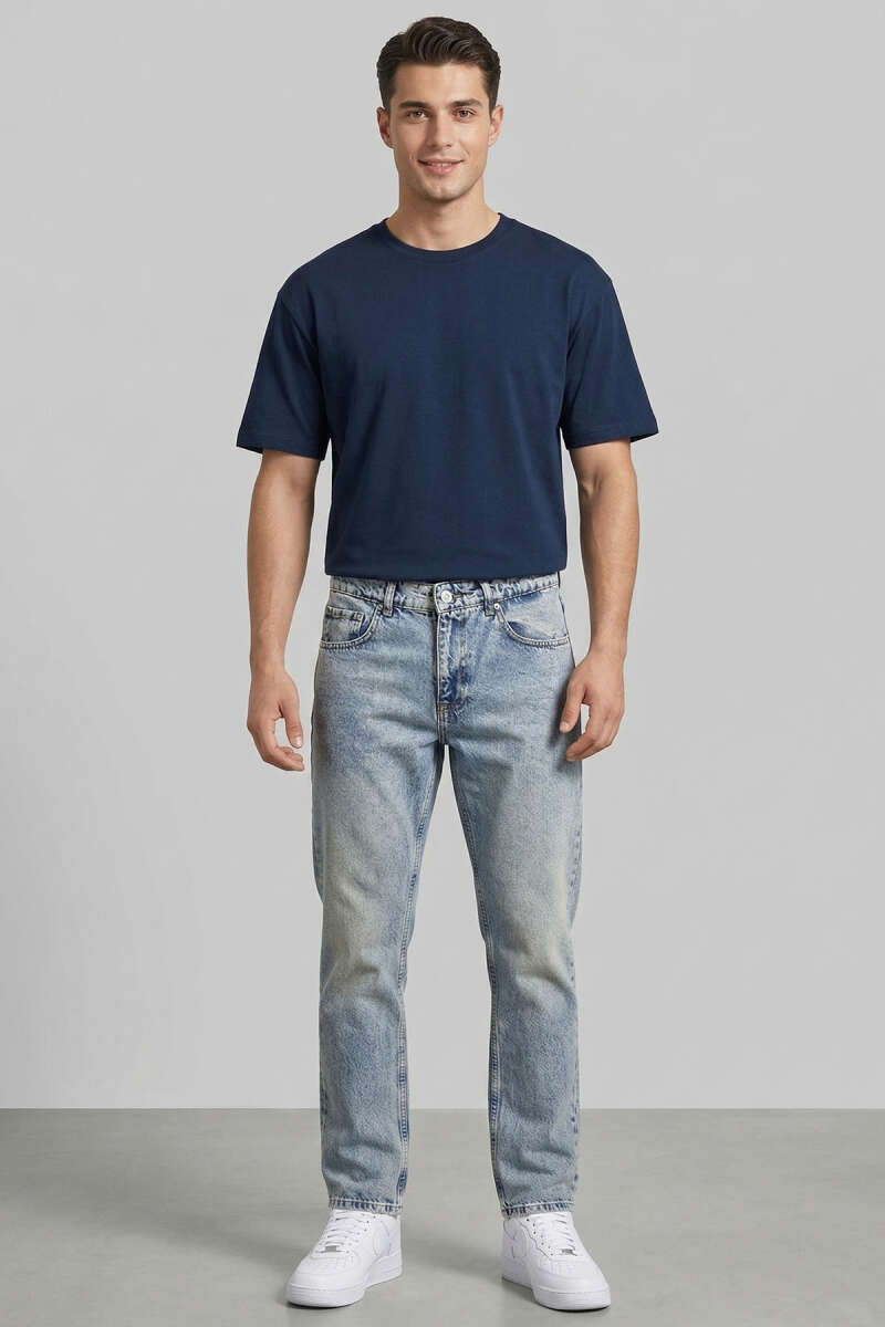 Tapered Fit Kot Erkek Pantolon Orta Mavi