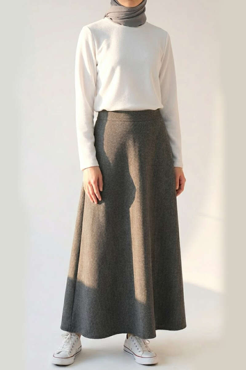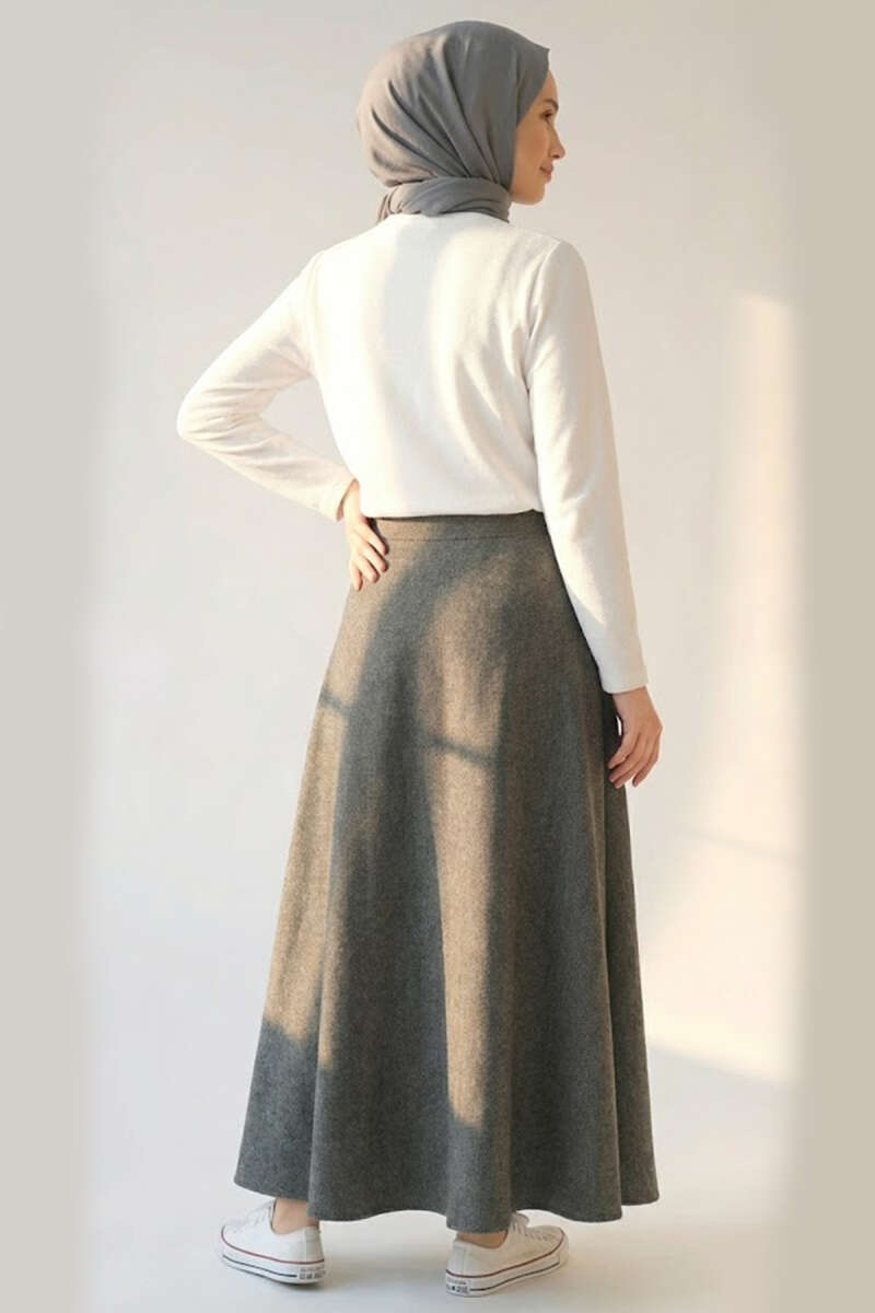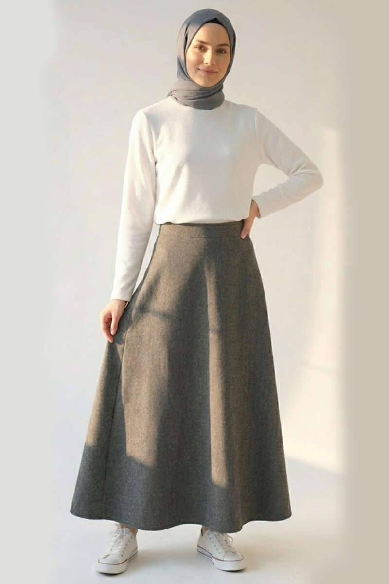 Cepli Balıksırtı Desen Kloş Etek Füme