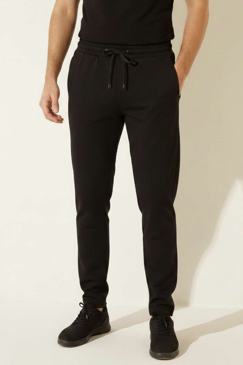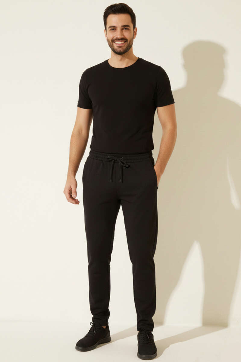 Cepli Bel Lastikli Erkek Eşofman Alt Siyah