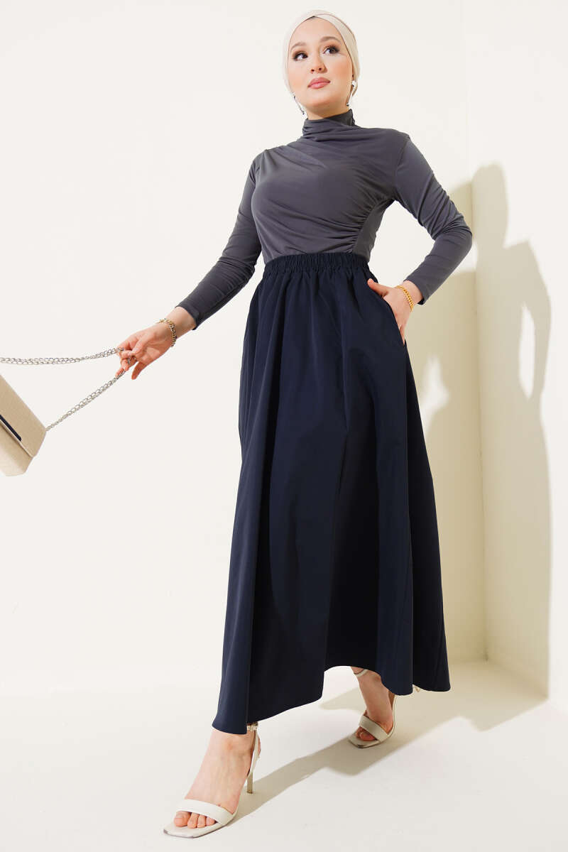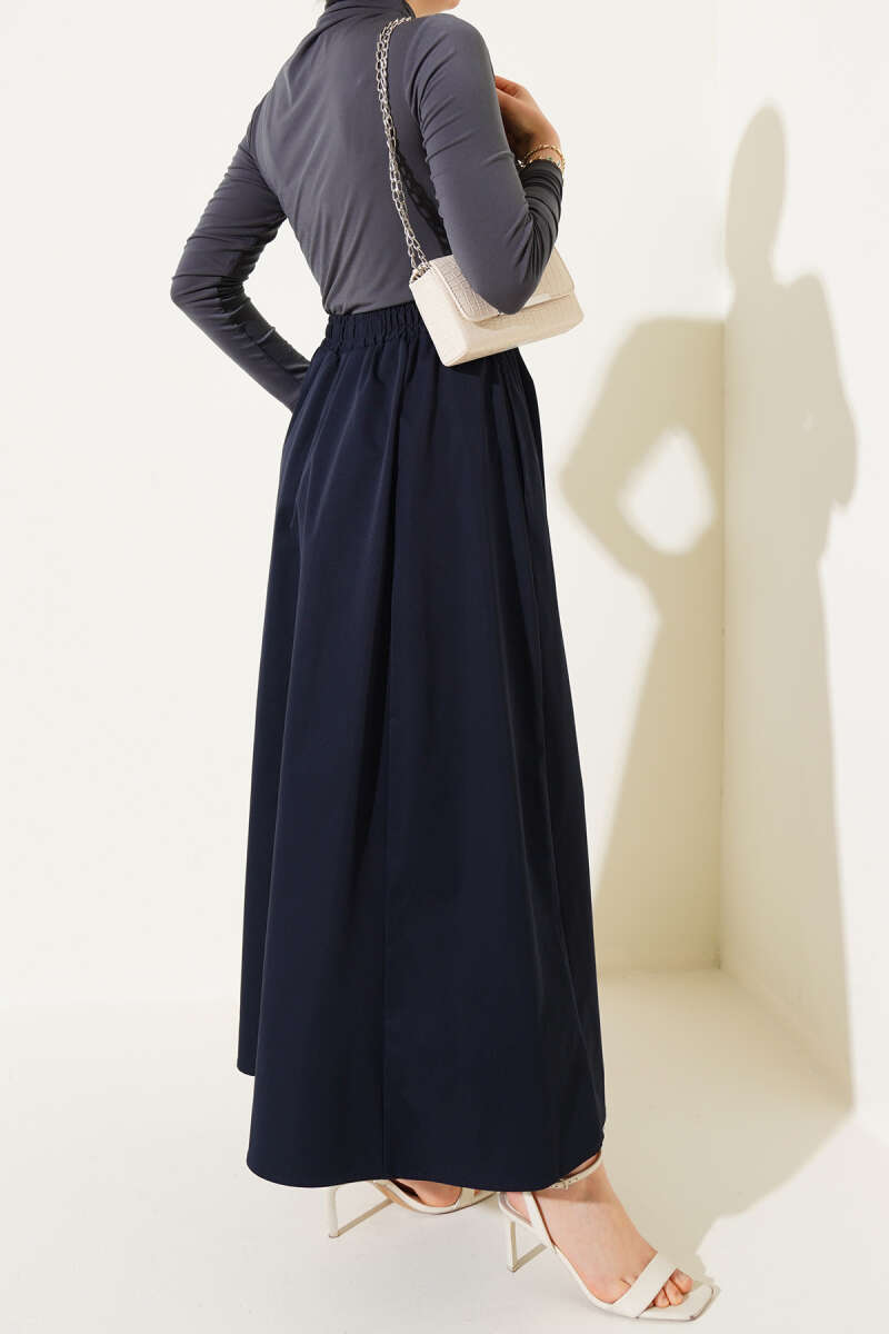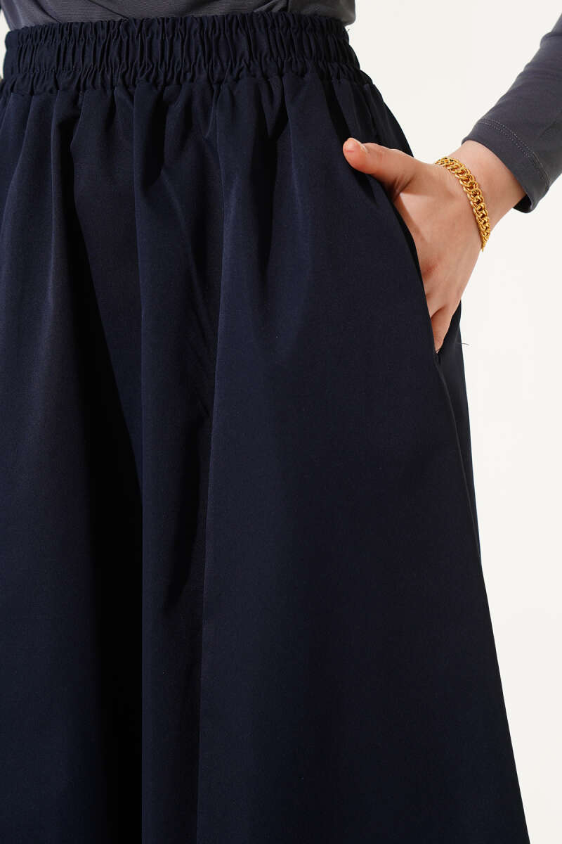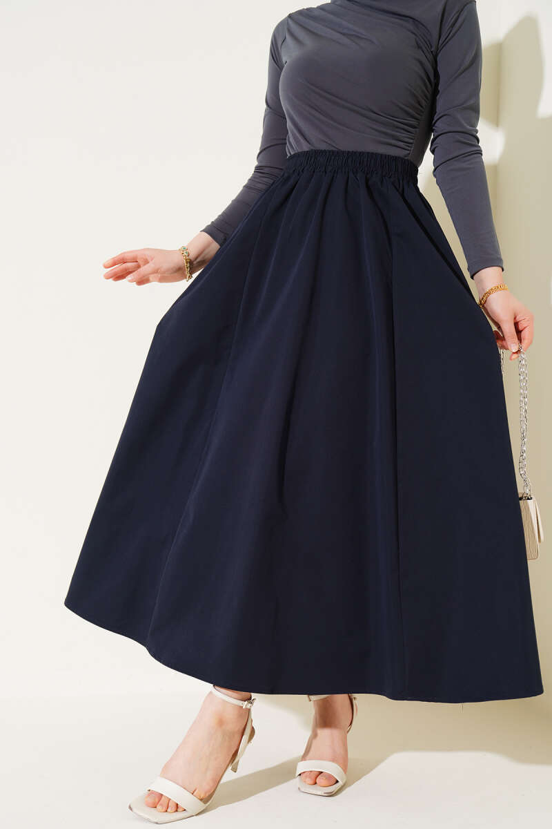 Fırfırlı Pileli Bel Lastikli Etek Lacivert