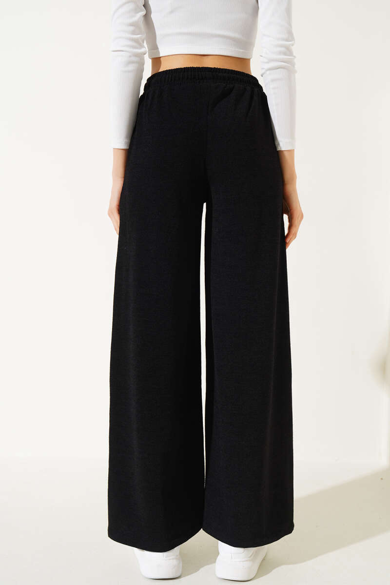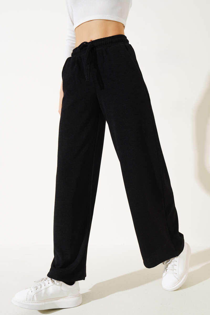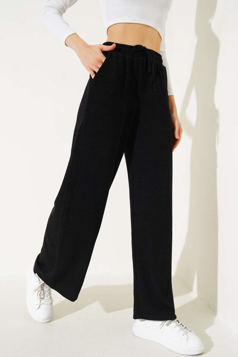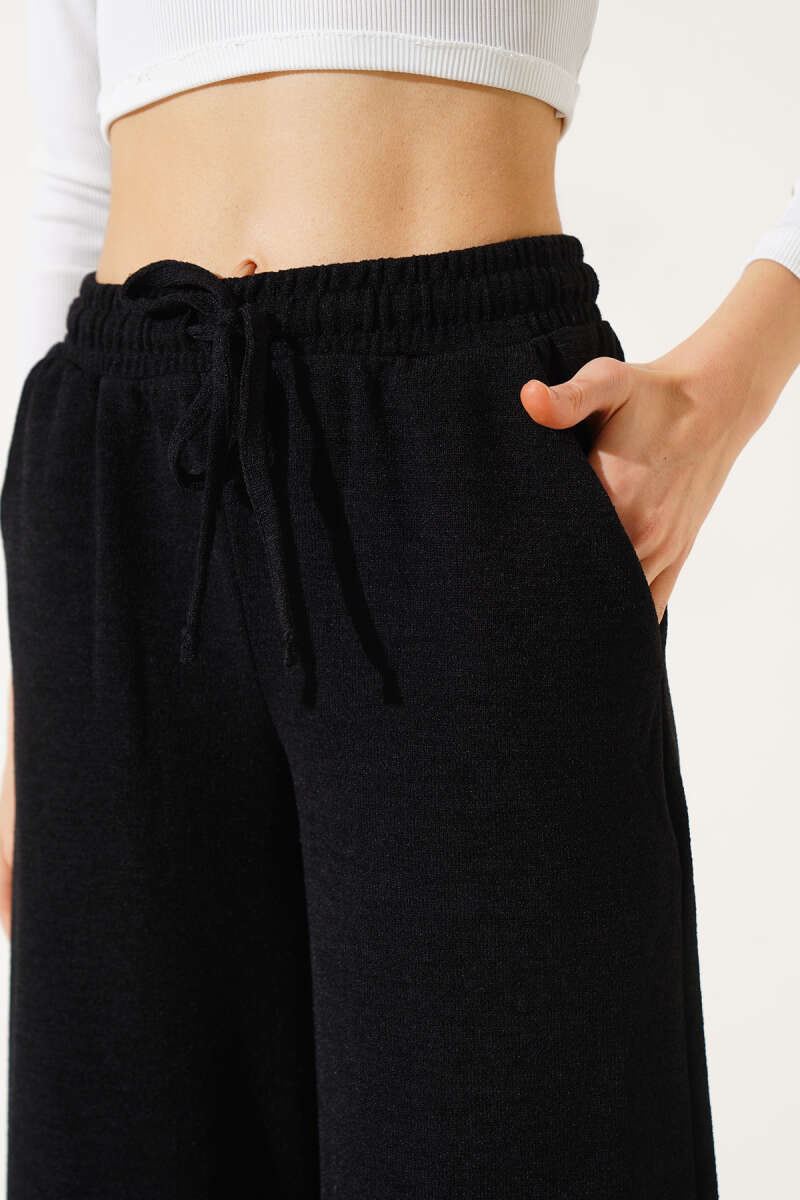 Düşük Omuz Bürümcük Kimono İkili Takım Siyah