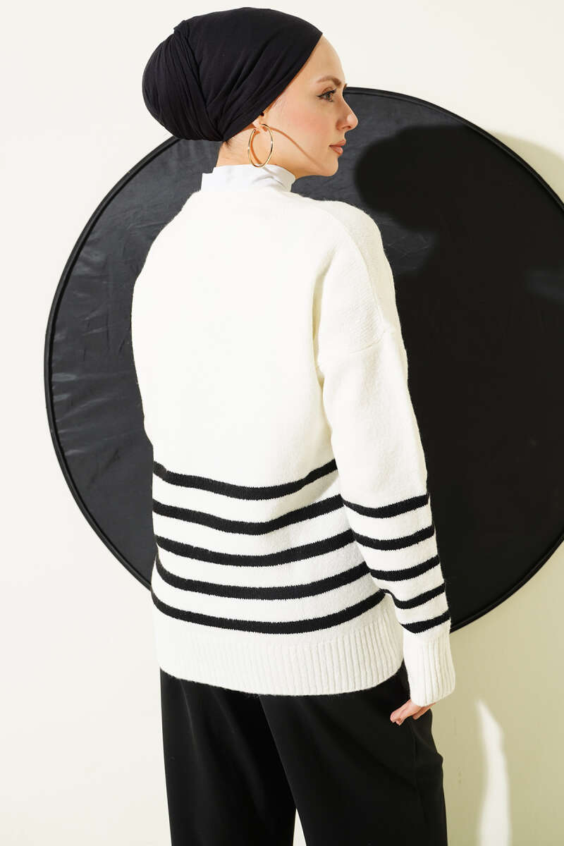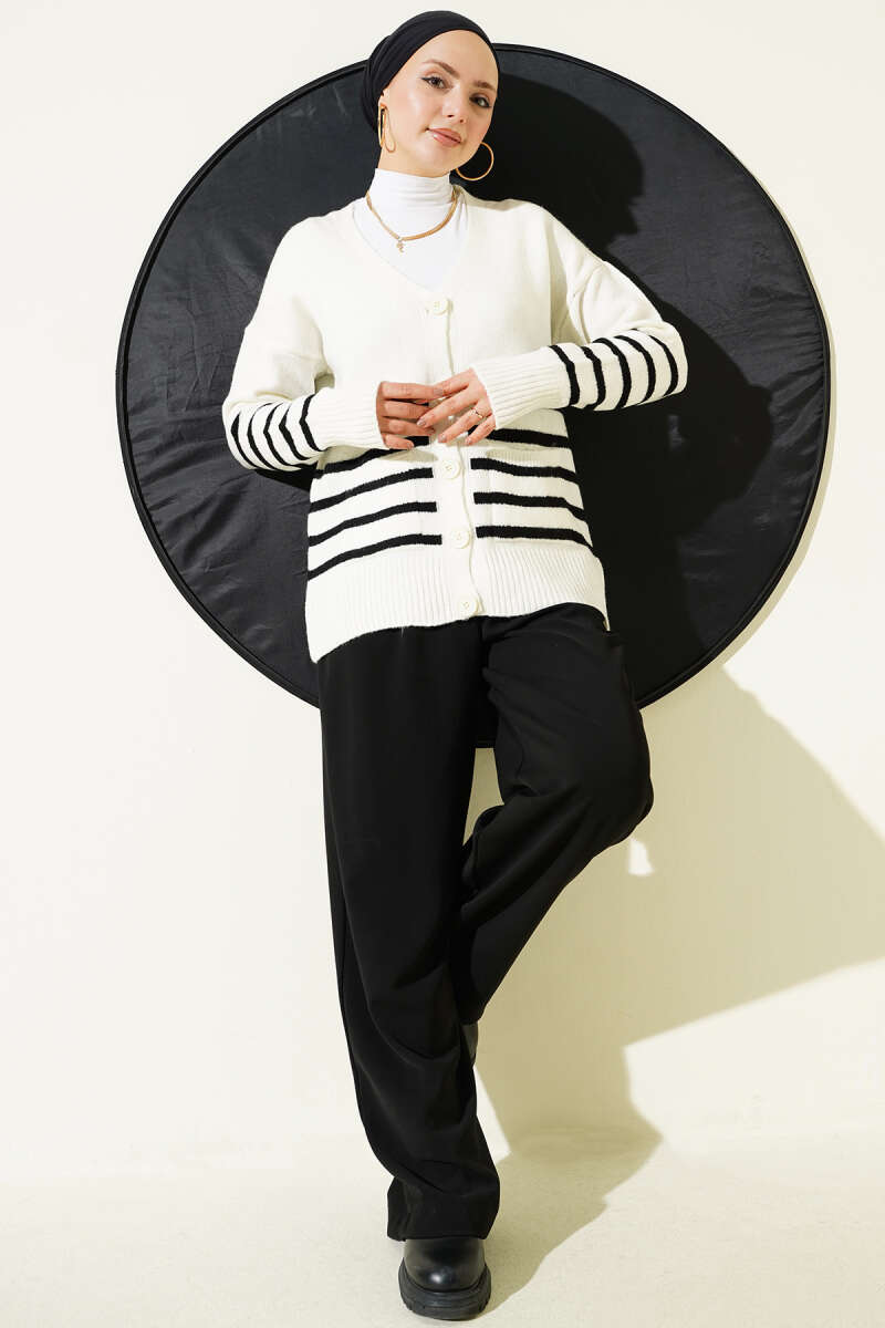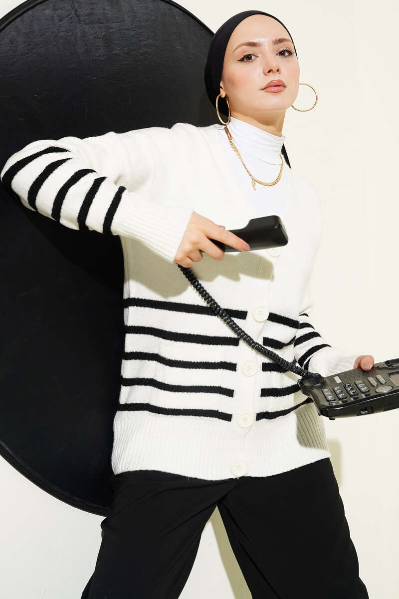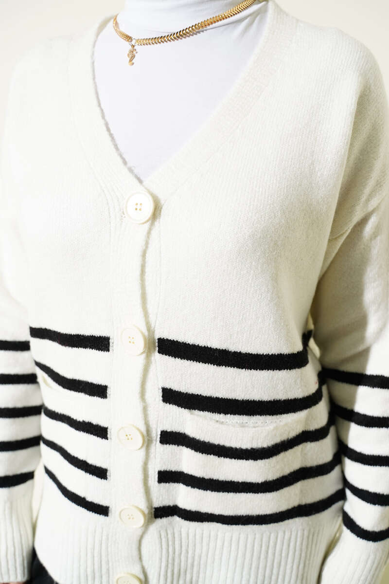 Cepli Çizgi Detaylı Triko Hırka Siyah