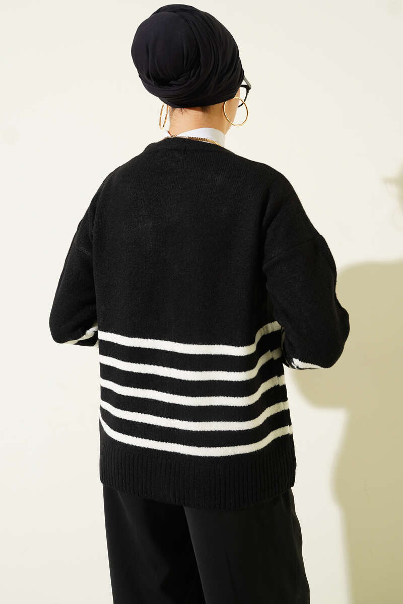 Loyşa İnce Çizgili Salaş İkili Takım Siyah