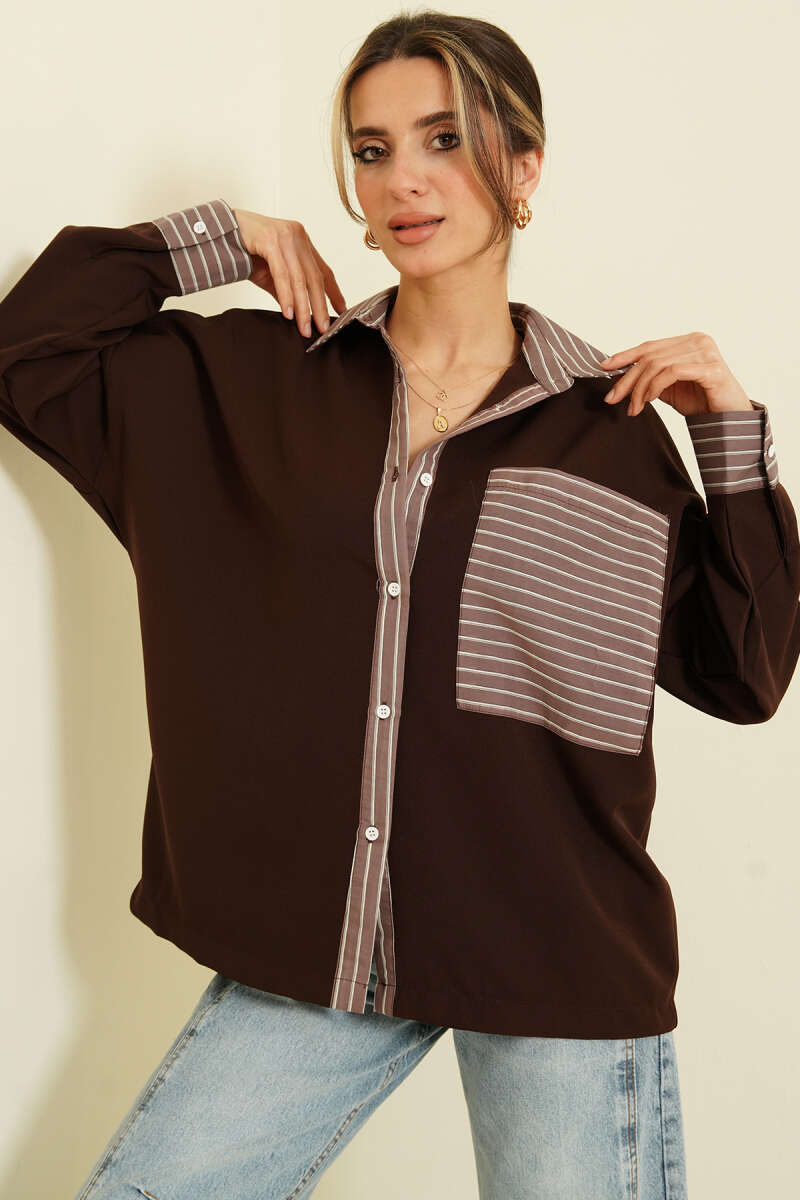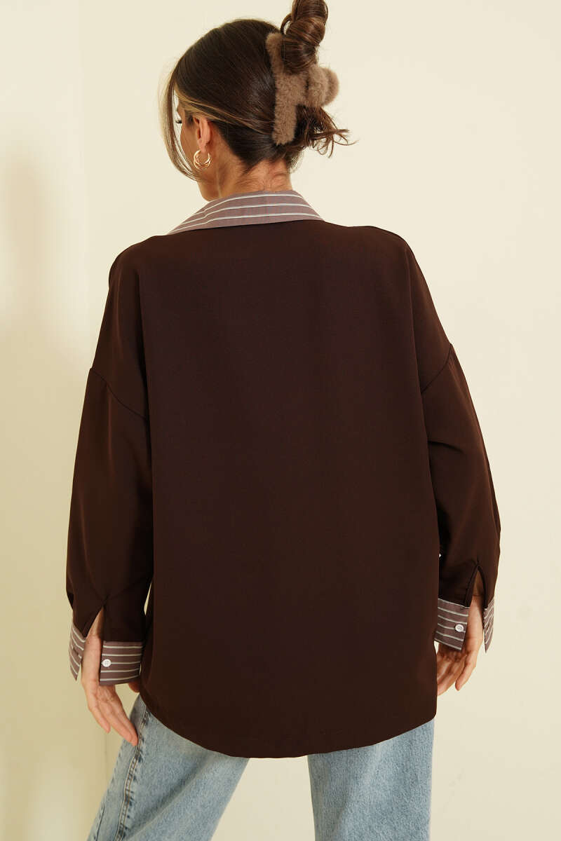 Dik Çizgili Oversize Gömlek Latte