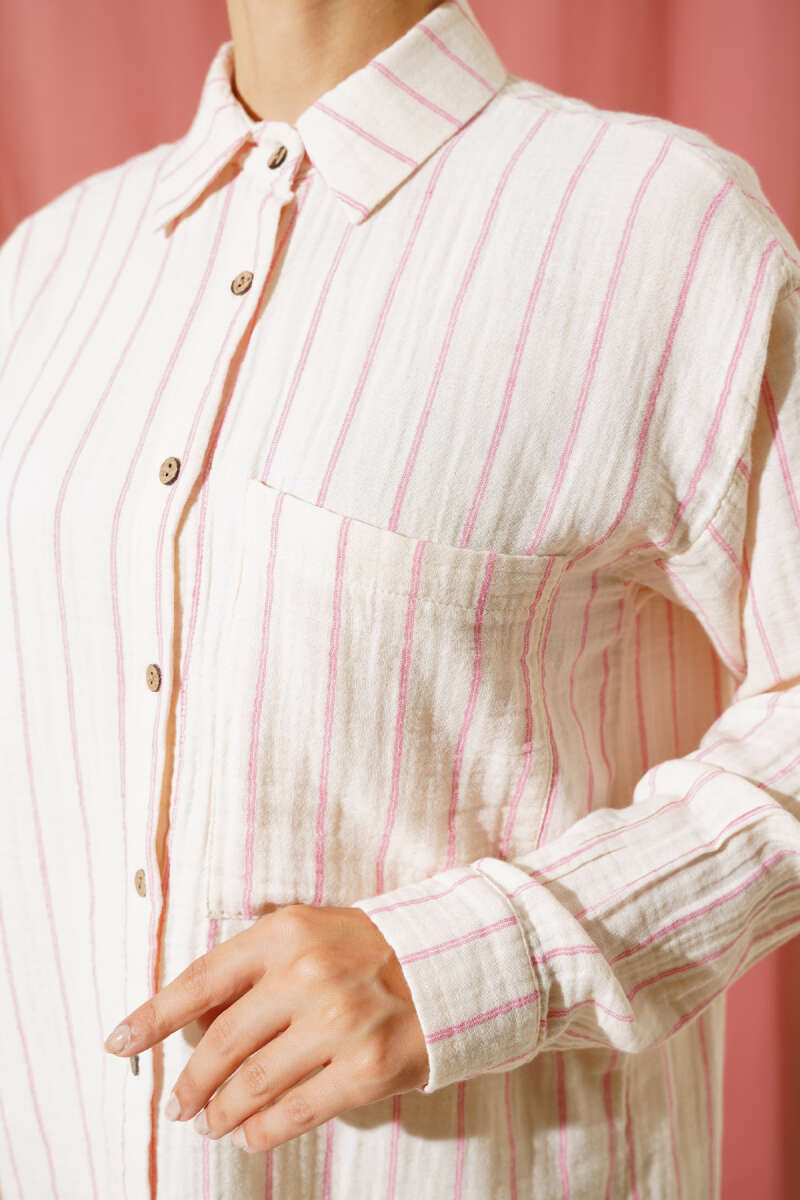 Cepli Çizgili Müslin Gömlek Fuşya