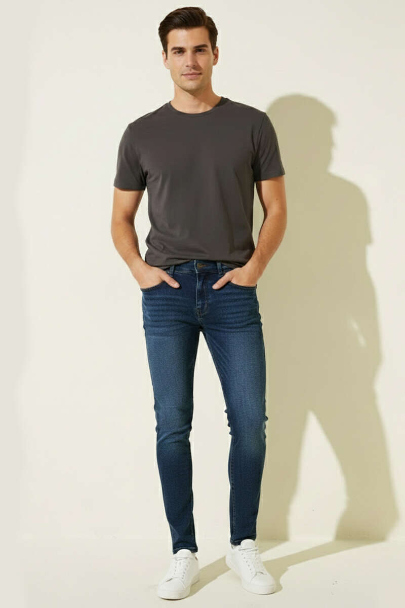 Dar Paça Likralı Erkek Kot Pantolon Lacivert