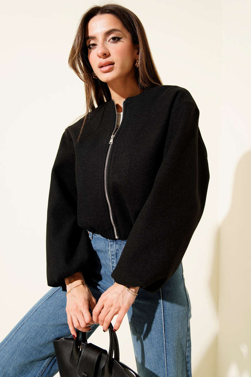 Cepli Fermuarlı Kısa Kaşe Ceket Taş