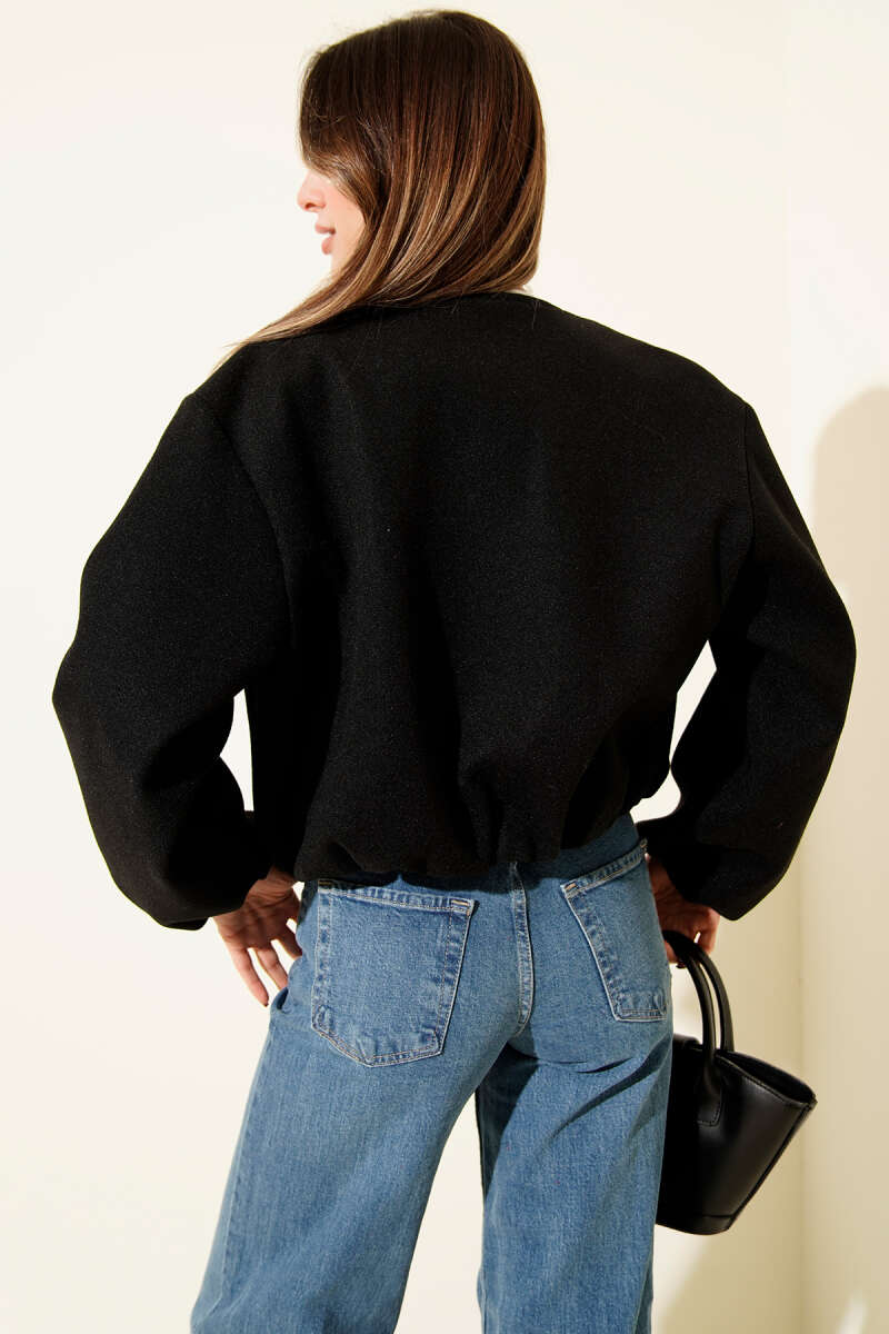 V Yaka Fitilli Kaşe Bluz Siyah
