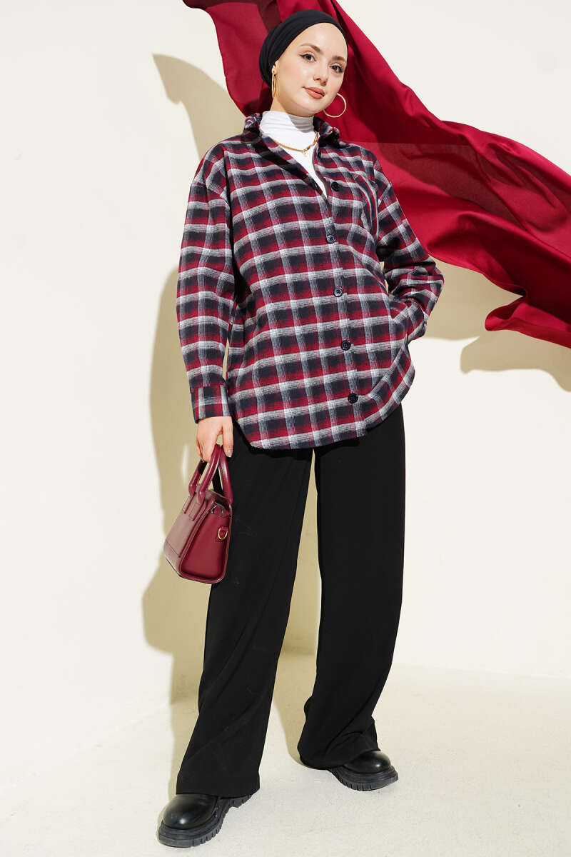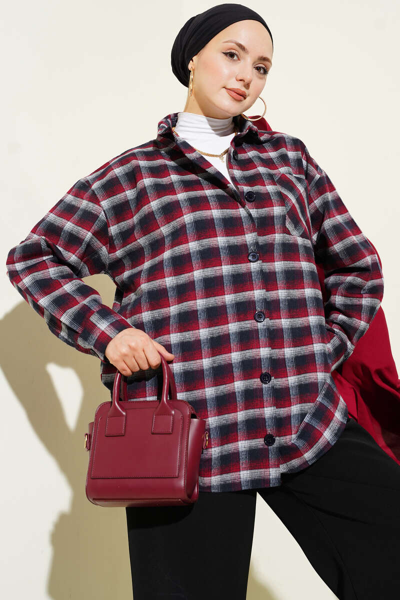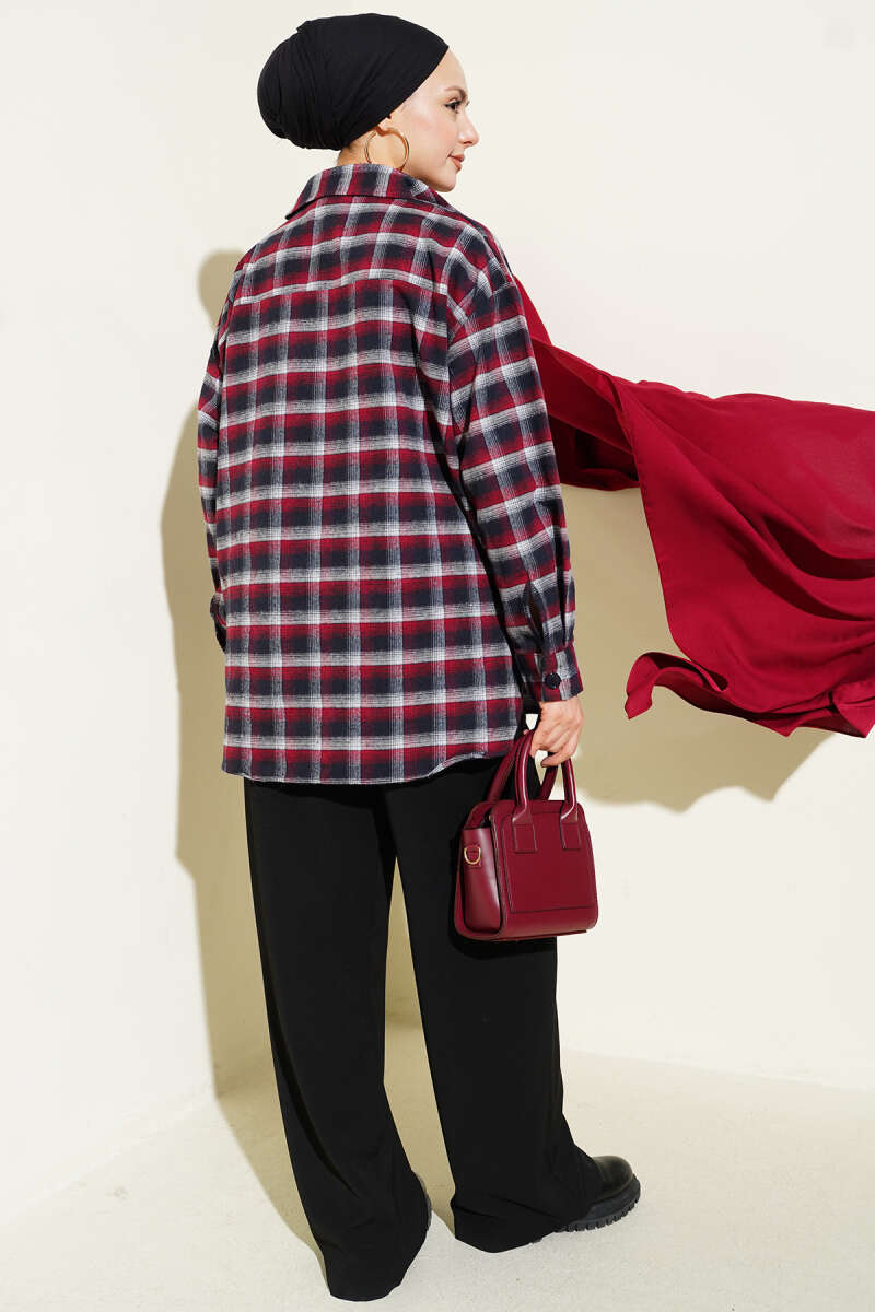 Gömlek Yaka Cepli Kısa Kaşe Ceket Bordo