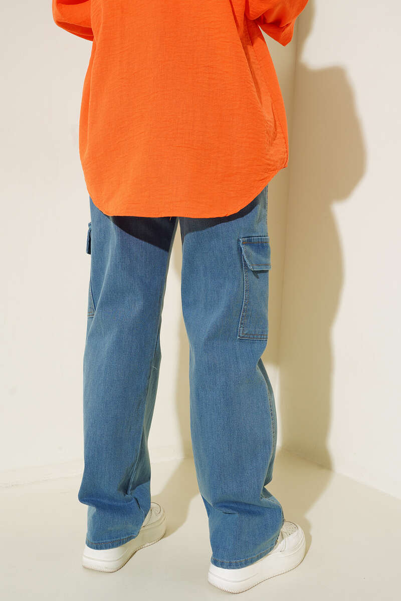Yeni sezonda sportif çizgiler taşıyan şık kargo pantolonumuz sizlerle. İki adet arkada, iki adet önde, iki adet yanında olmak üzere toplam altı adet cebi vardır. Pantolonumuz düğmeli ve fermuarlıdır. Yüksek bel olan kargo pantolonumuz beş adet kemer köprüsüne sahiptir.