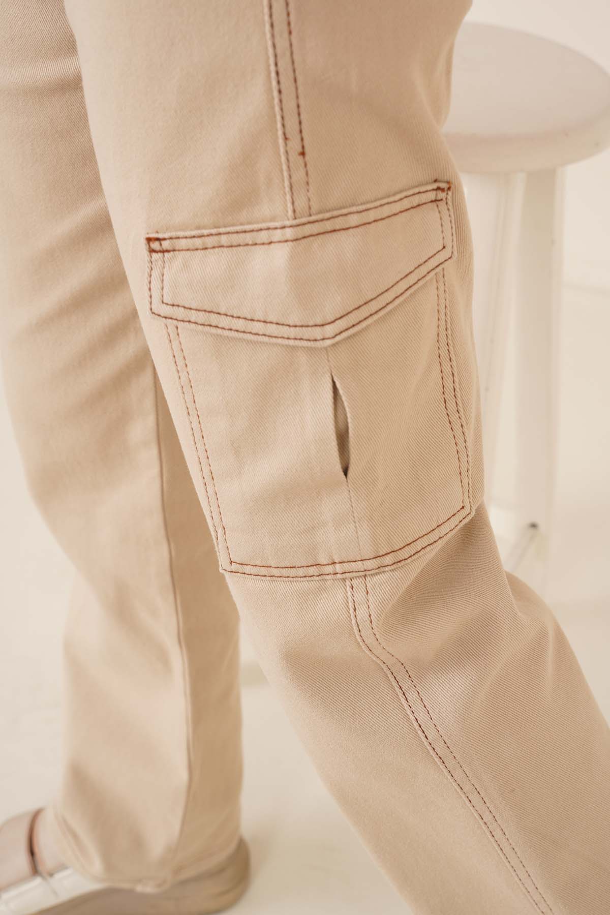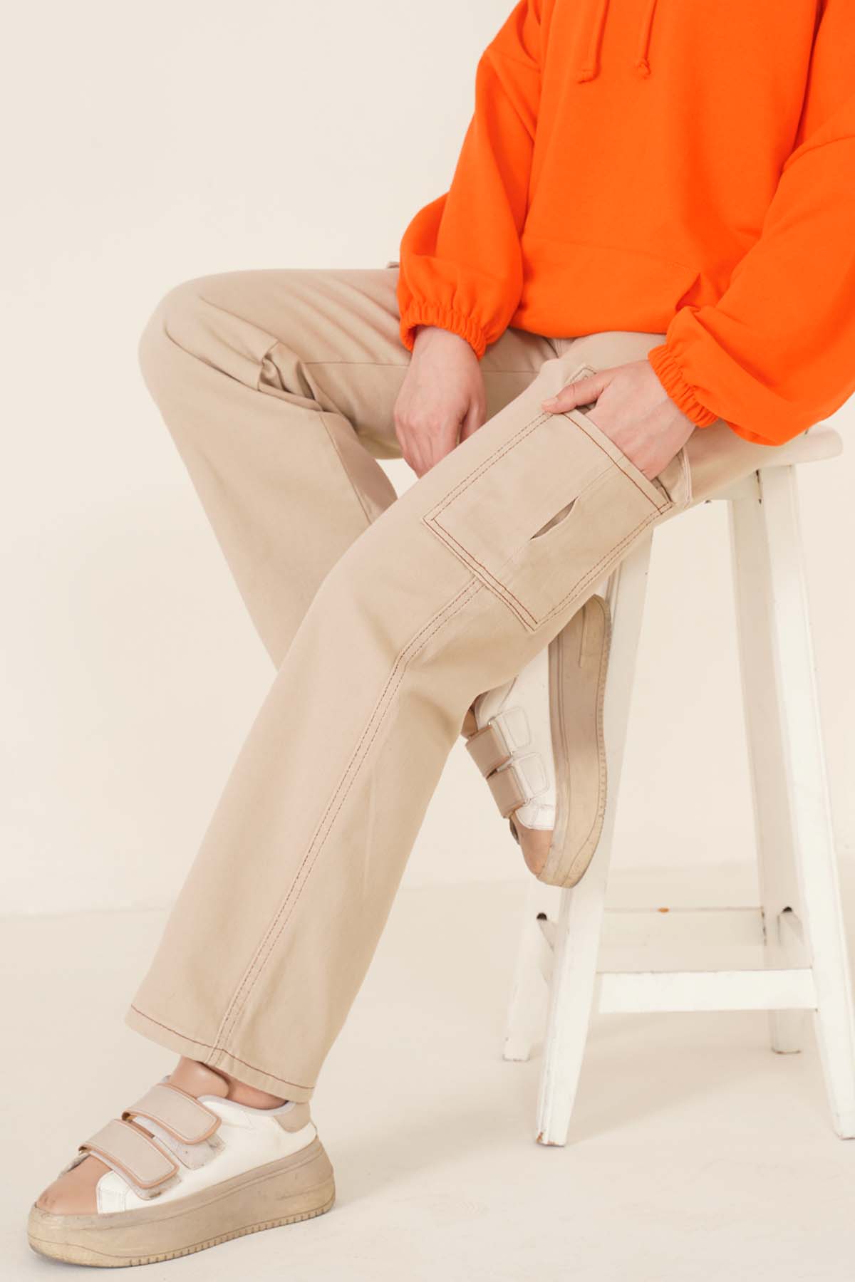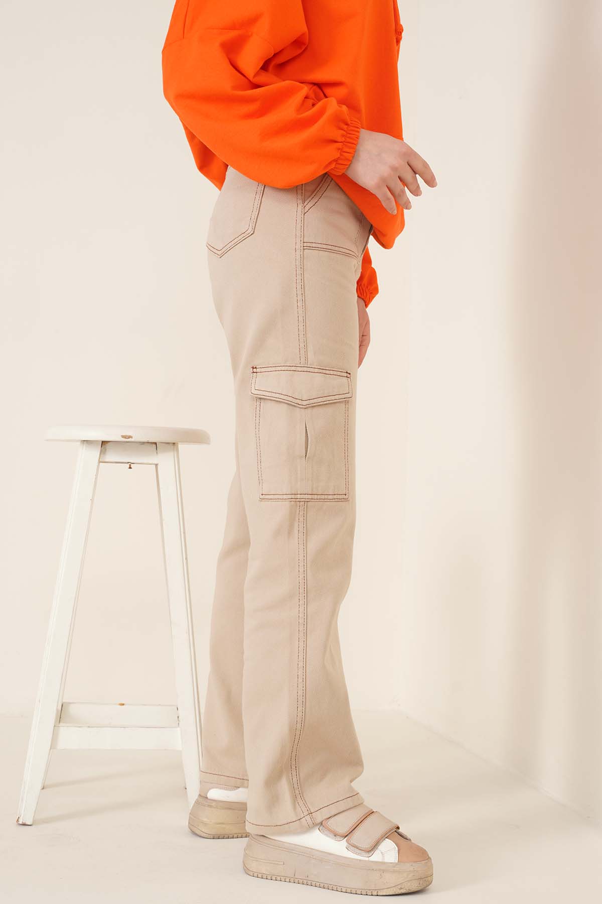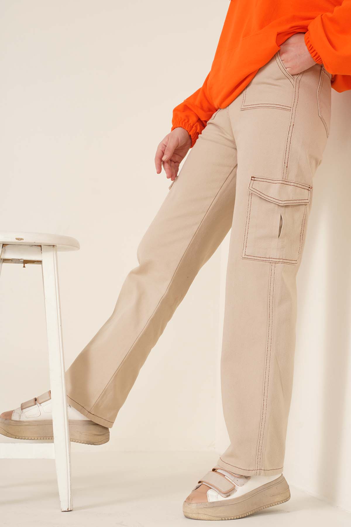 Yeni sezonda sportif çizgiler taşıyan şık kargo pantolonumuz sizlerle. İki adet arkada, iki adet önde, iki adet yanında olmak üzere toplam altı adet cebi vardır. Pantolonumuz düğmeli ve fermuarlıdır. Yüksek bel olan kargo pantolonumuz beş adet kemer köprüsüne sahiptir.