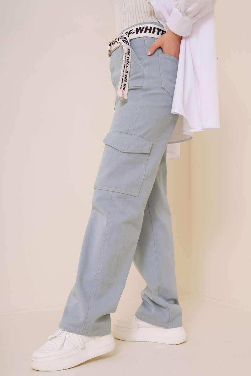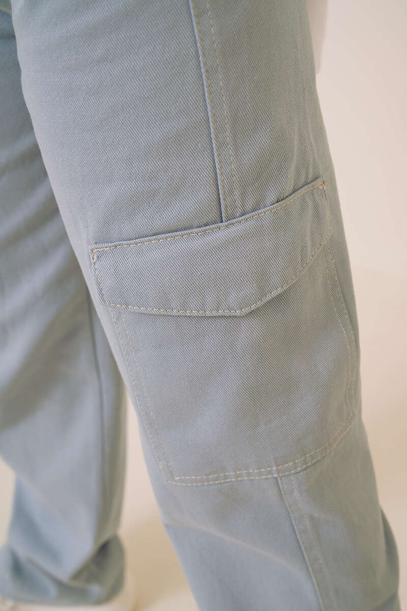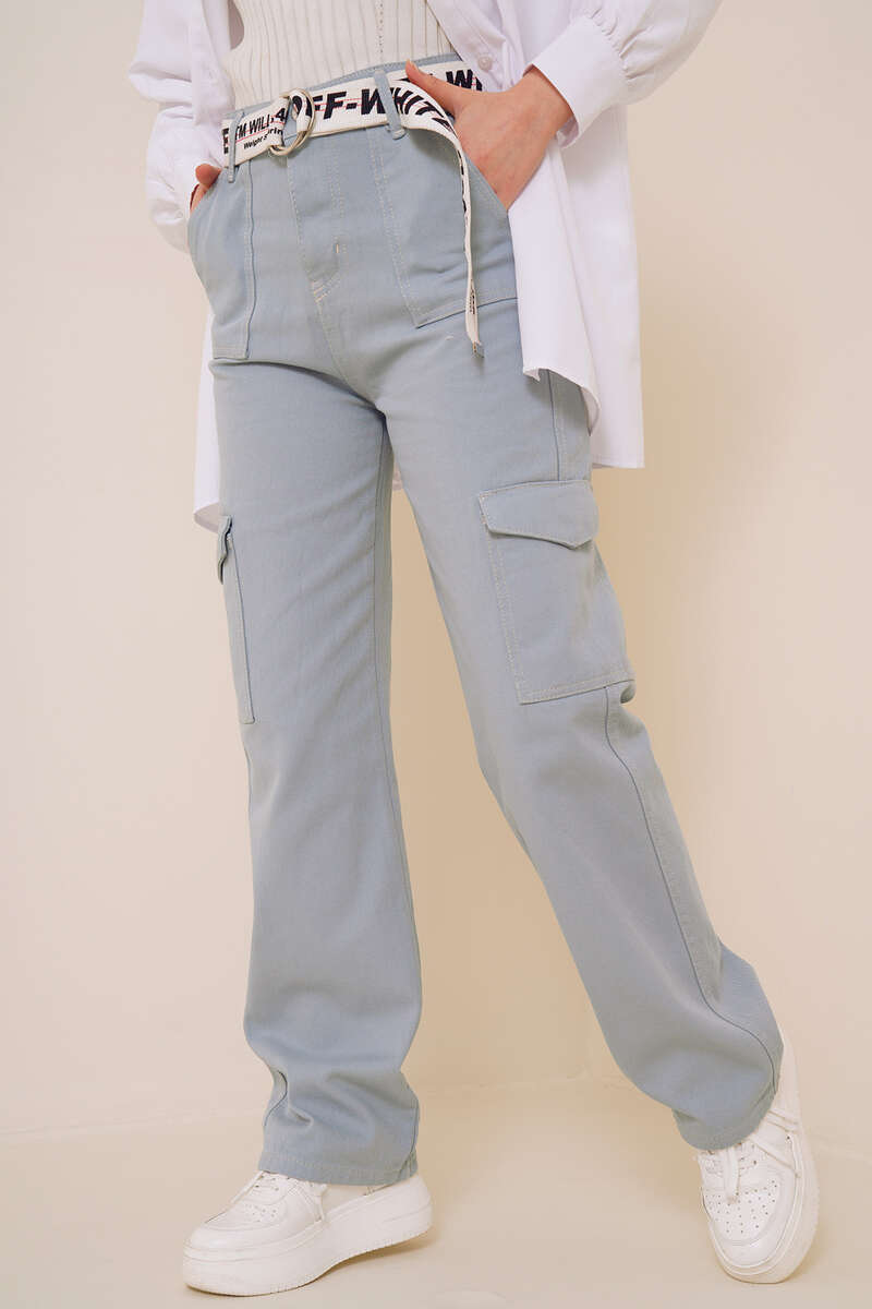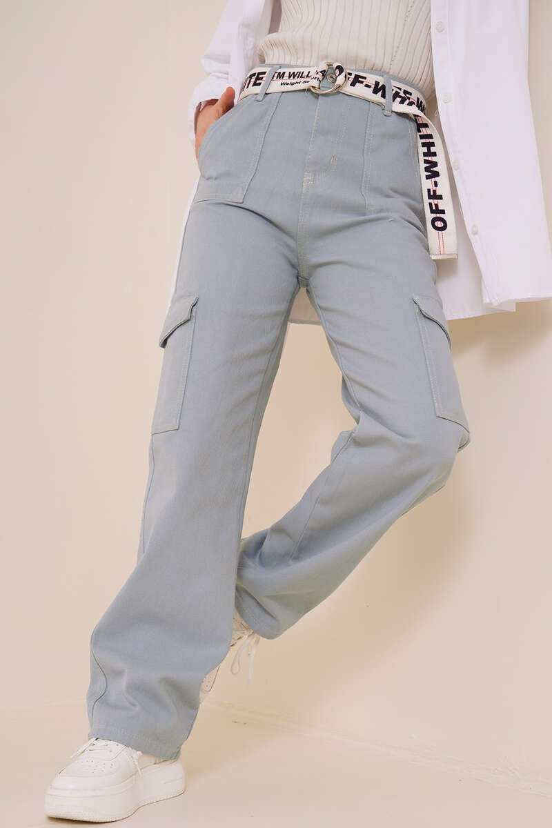 Yeni sezonda sportif çizgiler taşıyan şık kargo pantolonumuz sizlerle. İki adet arkada, iki adet önde, iki adet yanında olmak üzere toplam altı adet cebi vardır. Pantolonumuz düğmeli ve fermuarlıdır. Yüksek bel olan kargo pantolonumuz beş adet kemer köprüsüne sahiptir.