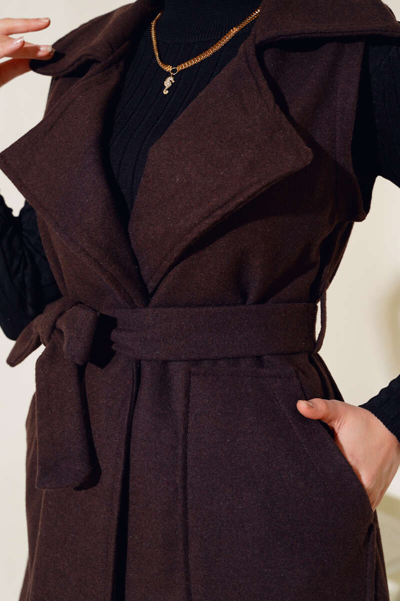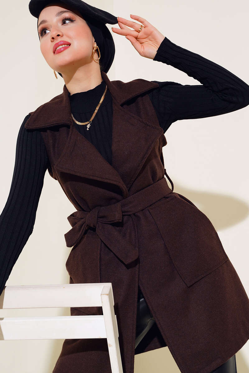 Yeni sezon keçe yelek modelimiz sizlerle beraber. İki adet cebi olan yeleğimiz belden kuşak bağlamalıdır. Kolsuz modeldir. Kruvaze yakadır. Yeleğimizin iki adet kemer köprüsü bulunmaktadır. Şık bir şekilde kombinleyeceğiniz yeleğimiz dolaplarınızda yerlerini beklemektedir.
