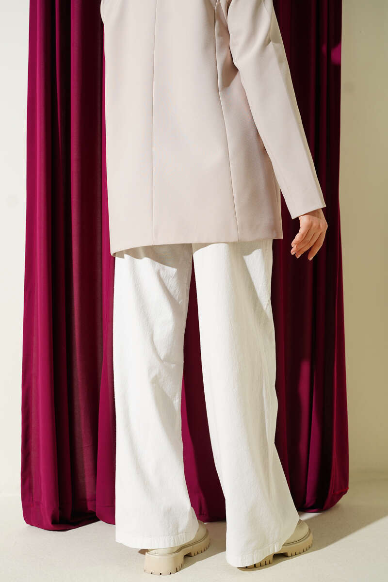 Cepli Keten Geniş Paça Pantolon Lacivert